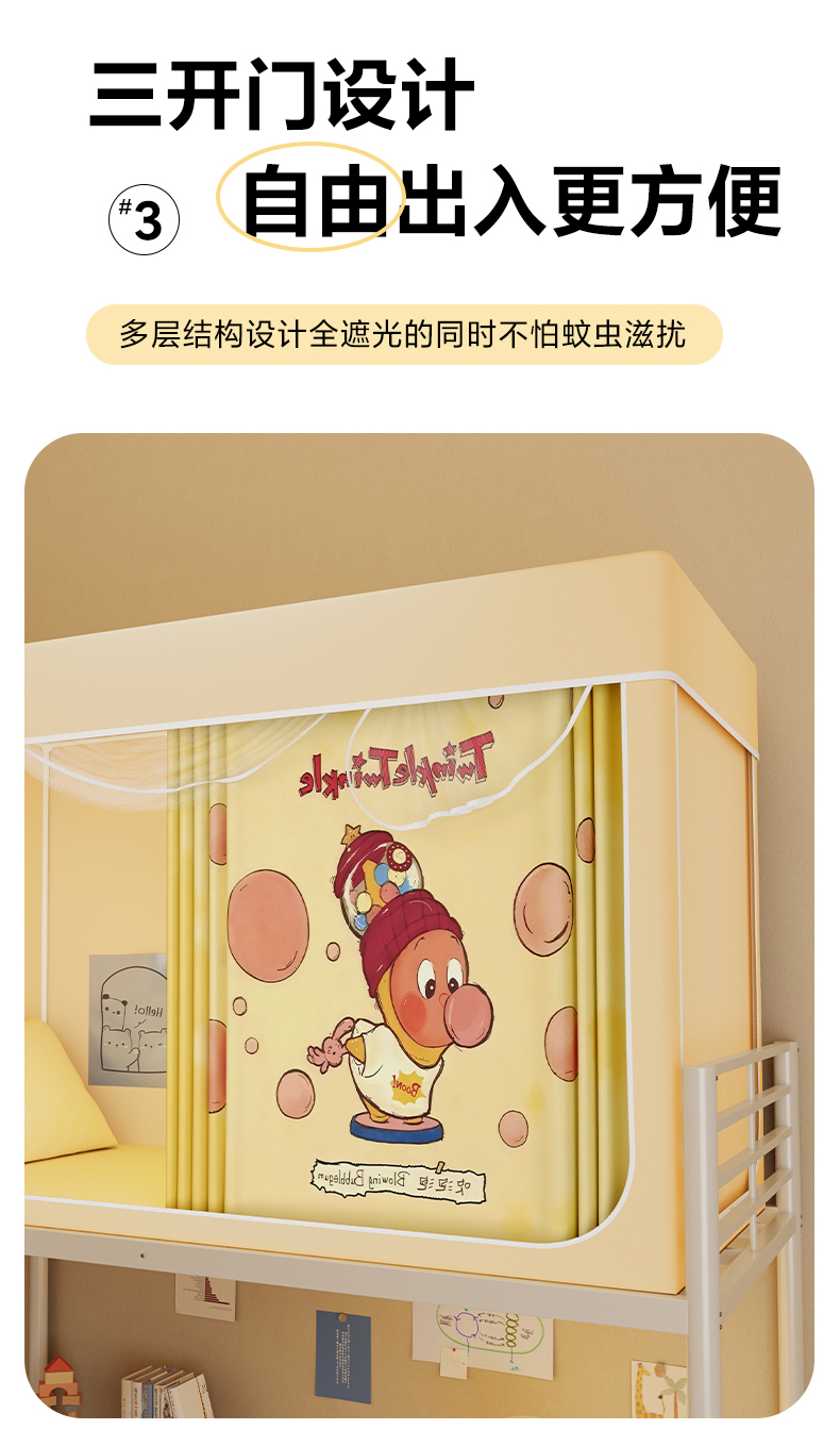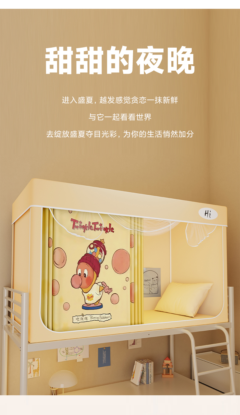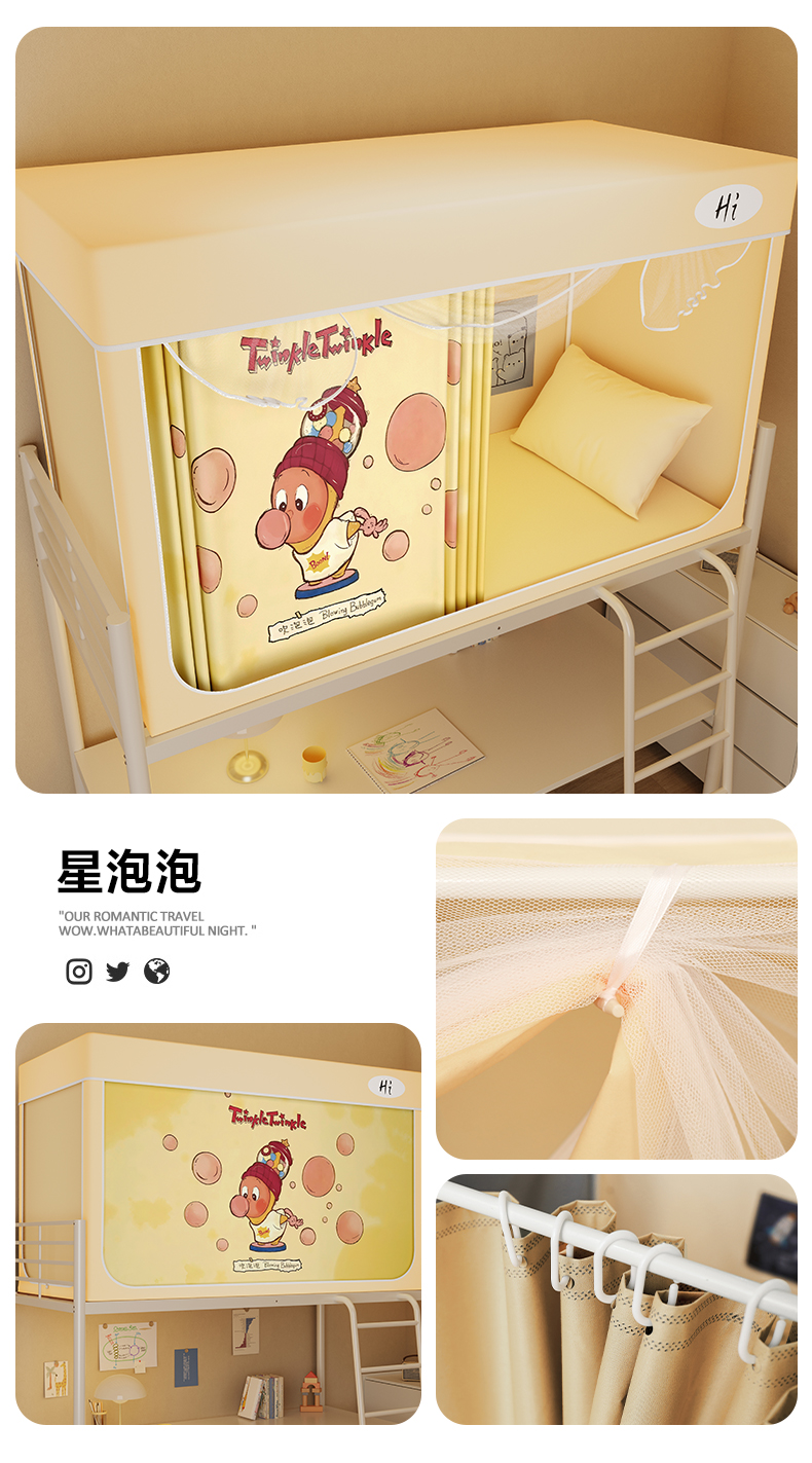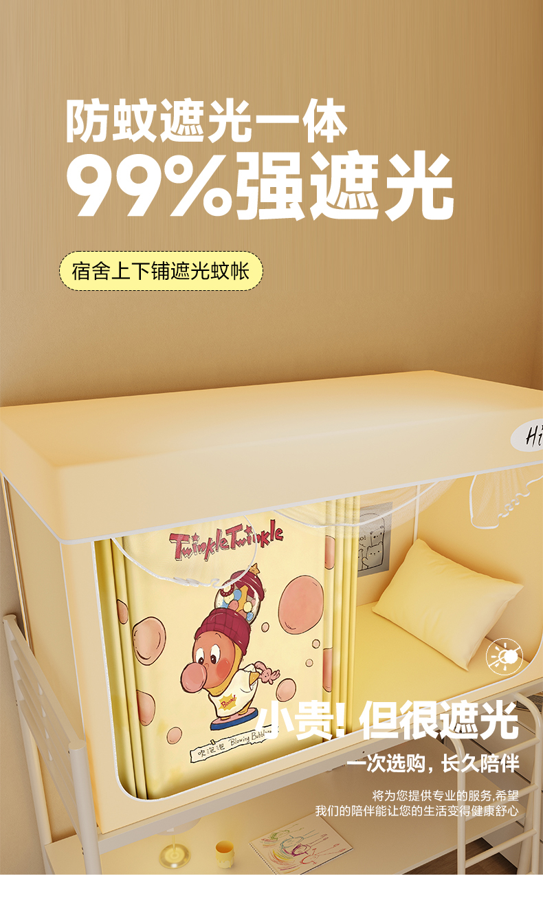当前位置: 91家纺网 > 商品网购 > 床上用品 > 蚊帐 > 学生蚊帐 > 安金蚊帐2025新款防蚊遮光一体99%强遮光学生宿舍上下铺遮光学生蚊帐-黄色系列 星泡泡