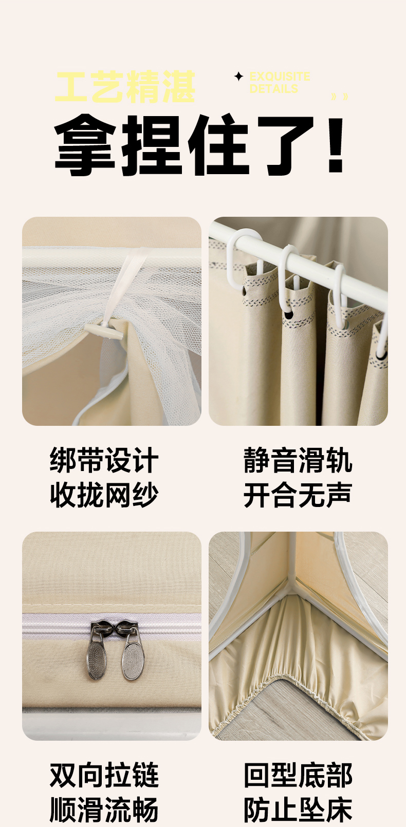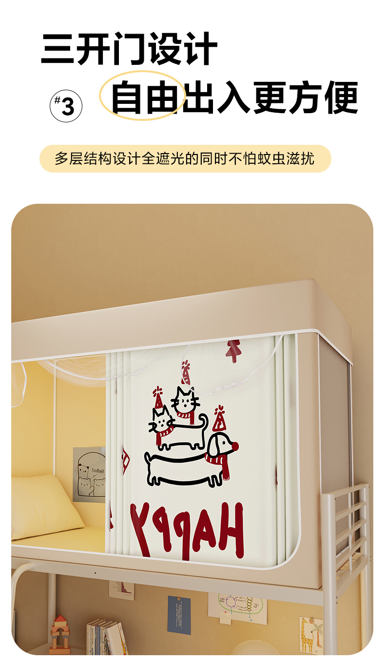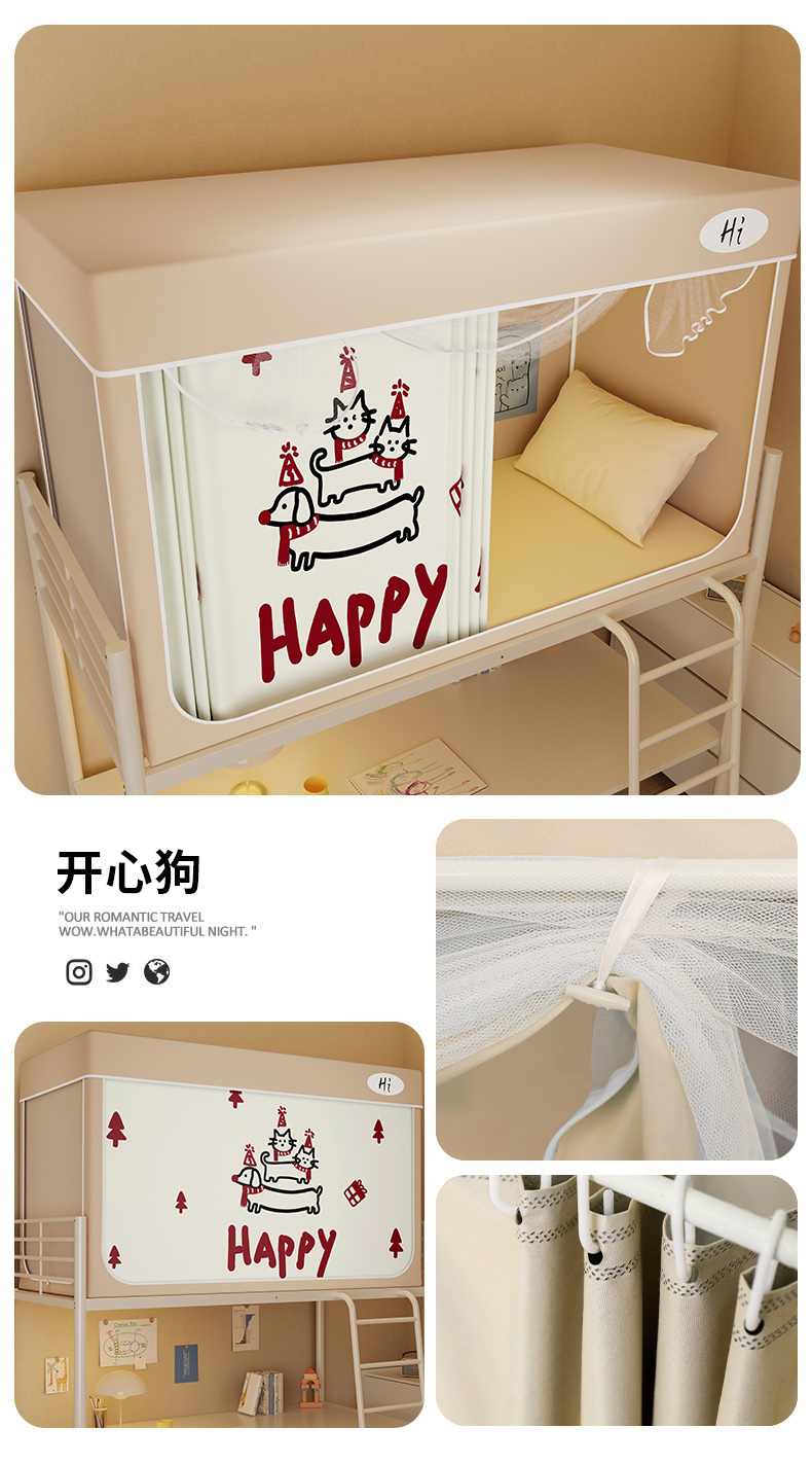 当前位置: 91家纺网 > 商品网购 > 床上用品 > 蚊帐 > 学生蚊帐 > 安金蚊帐2025新款防蚊遮光一体99%强遮光学生宿舍上下铺遮光学生蚊帐-卡其系列 开心狗