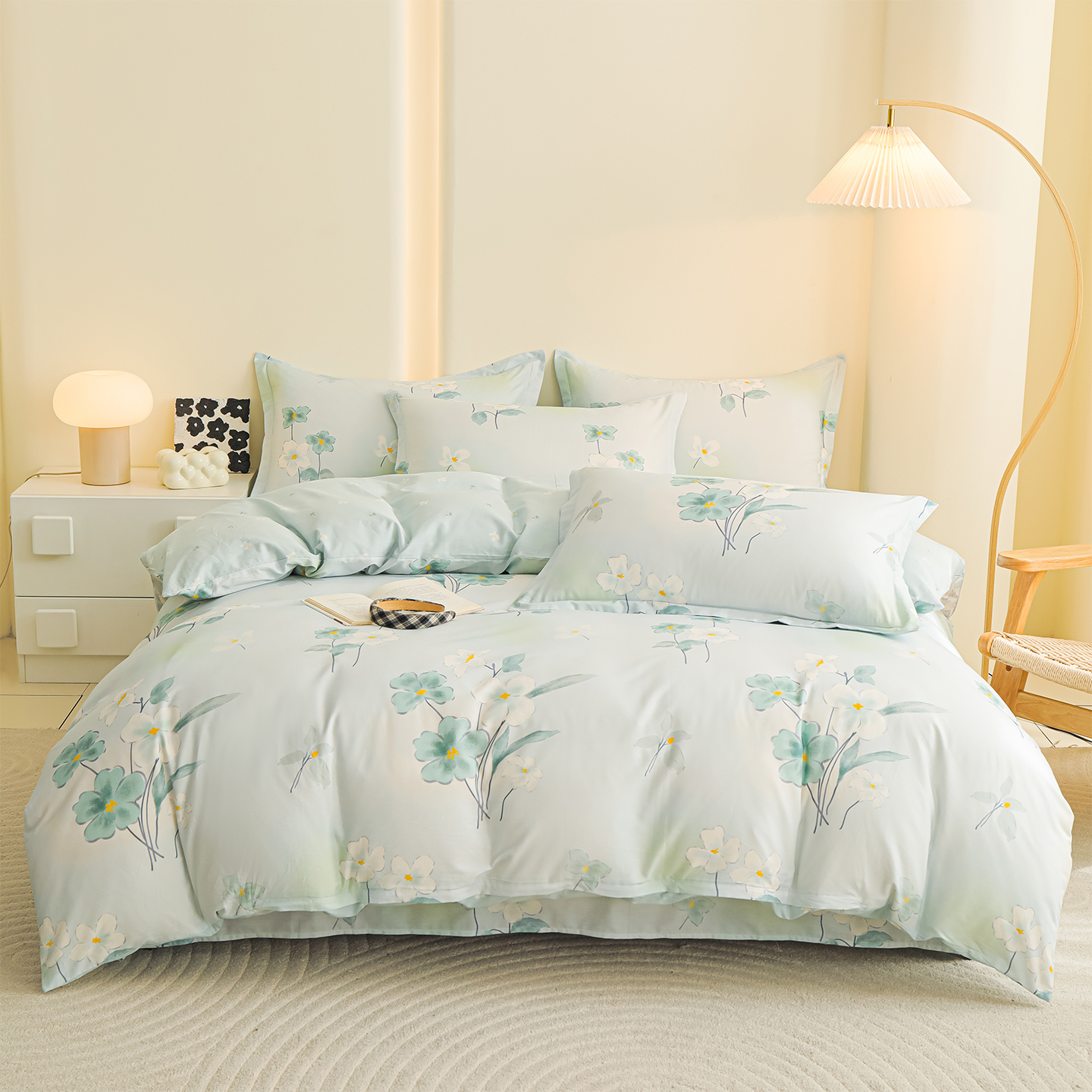 (总)金鑫汇家纺 2026新款全棉印花小清新四件套系列-可露丽,海盐可露丽,浅咖可露丽,浅绿可露丽,月下花影-桔,月下花影-蓝,月下花影-绿