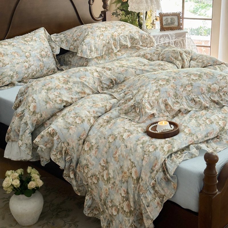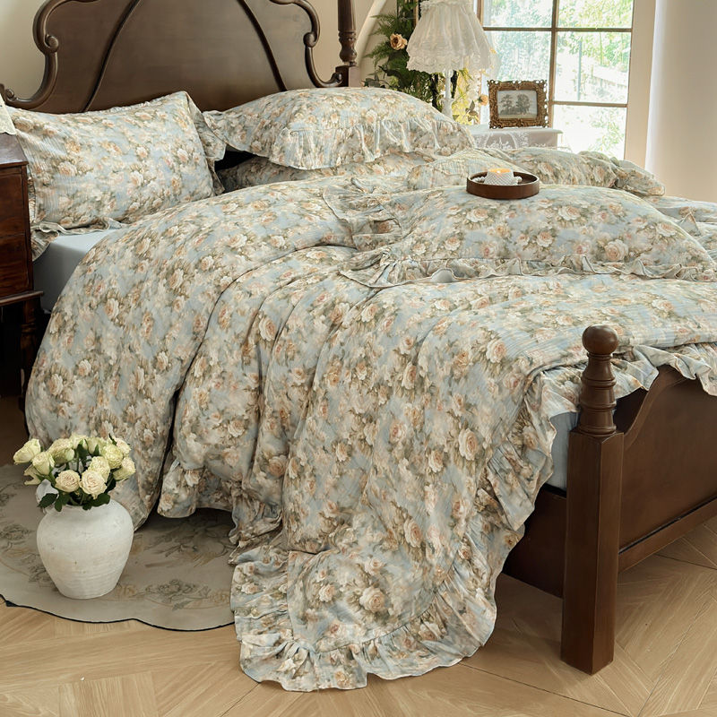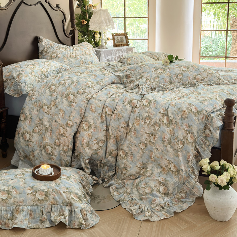 木楌家居2025新款法式油画风全棉双层皱皱纱四件套 烟雨江南