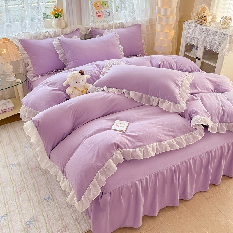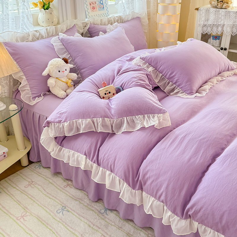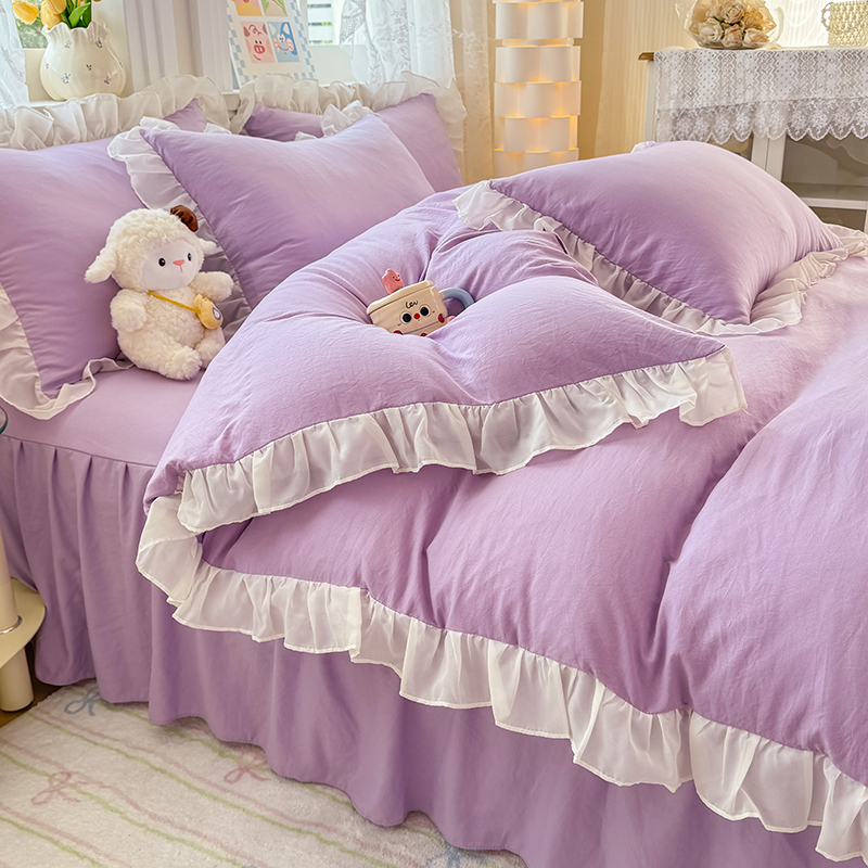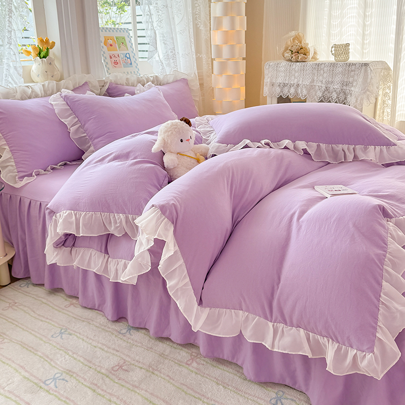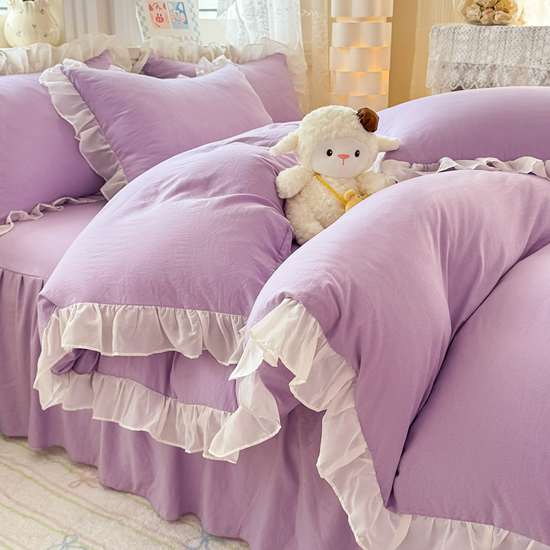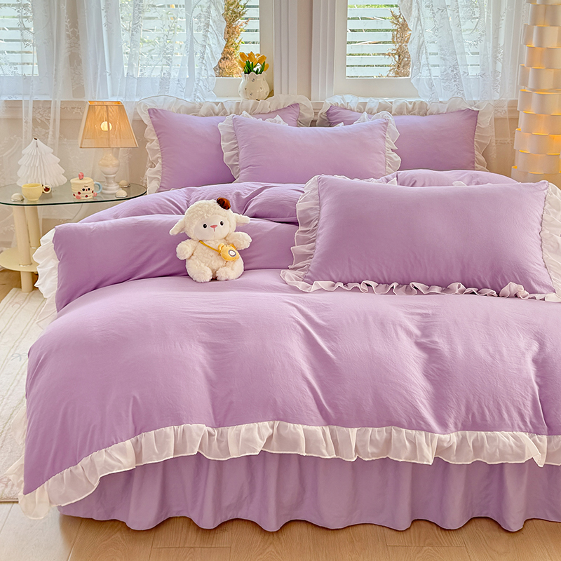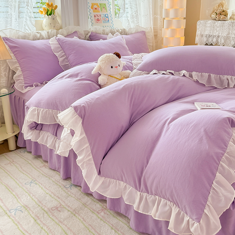 博弈家纺 2025新款小清新温柔公主风加厚水洗棉床裙床上四件套 花边纯色—葡萄紫