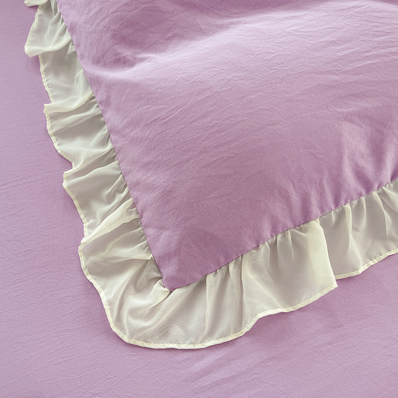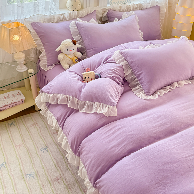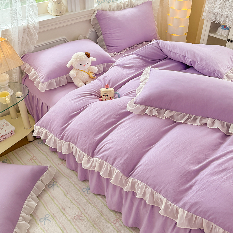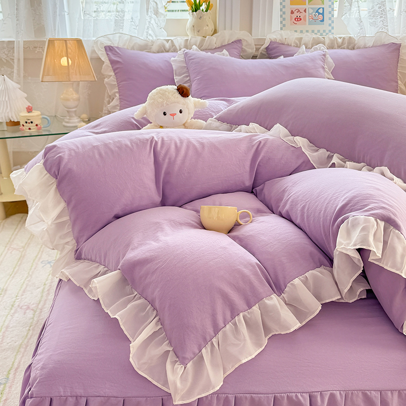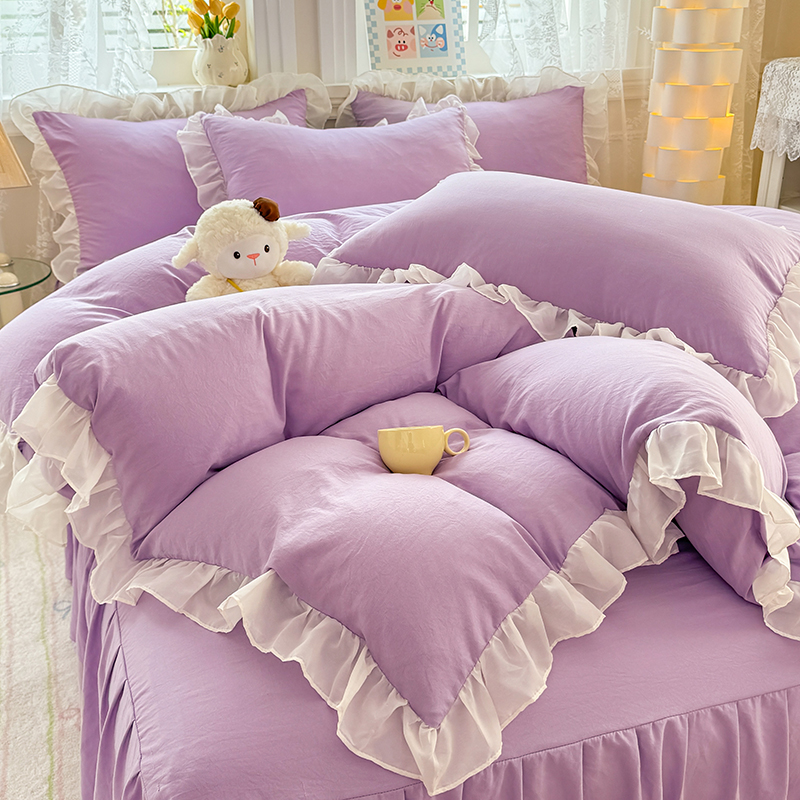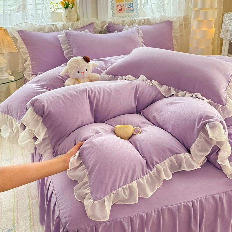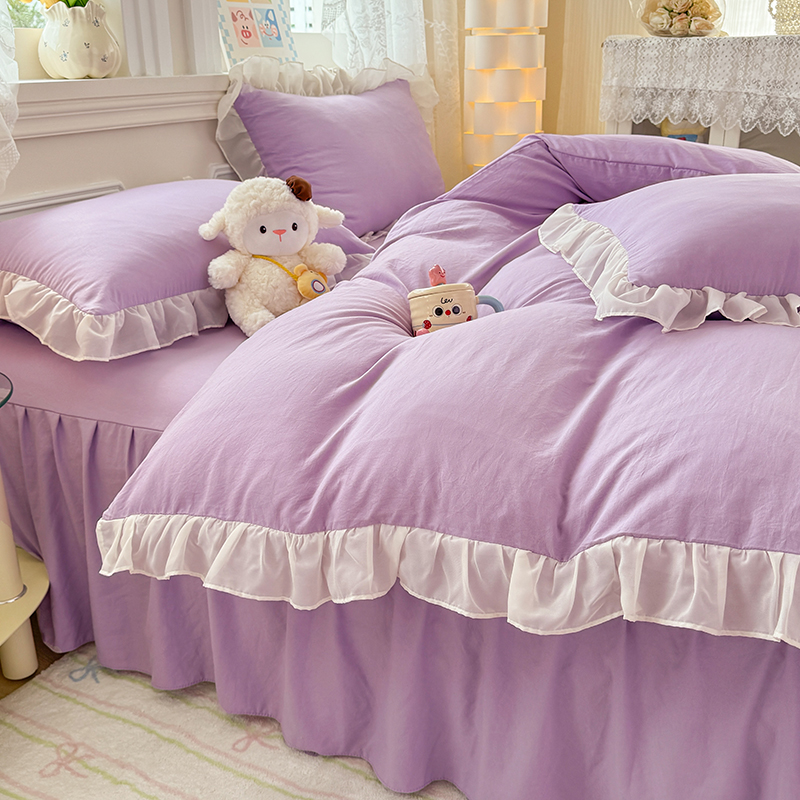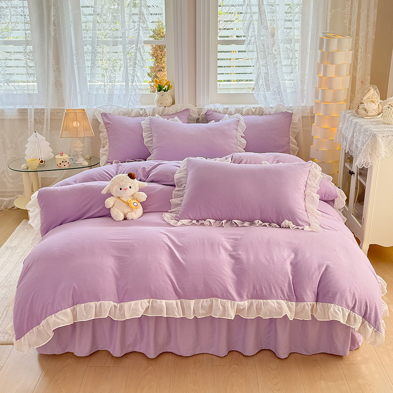 博弈家纺 2025新款小清新温柔公主风加厚水洗棉床裙床上四件套 花边纯色—葡萄紫