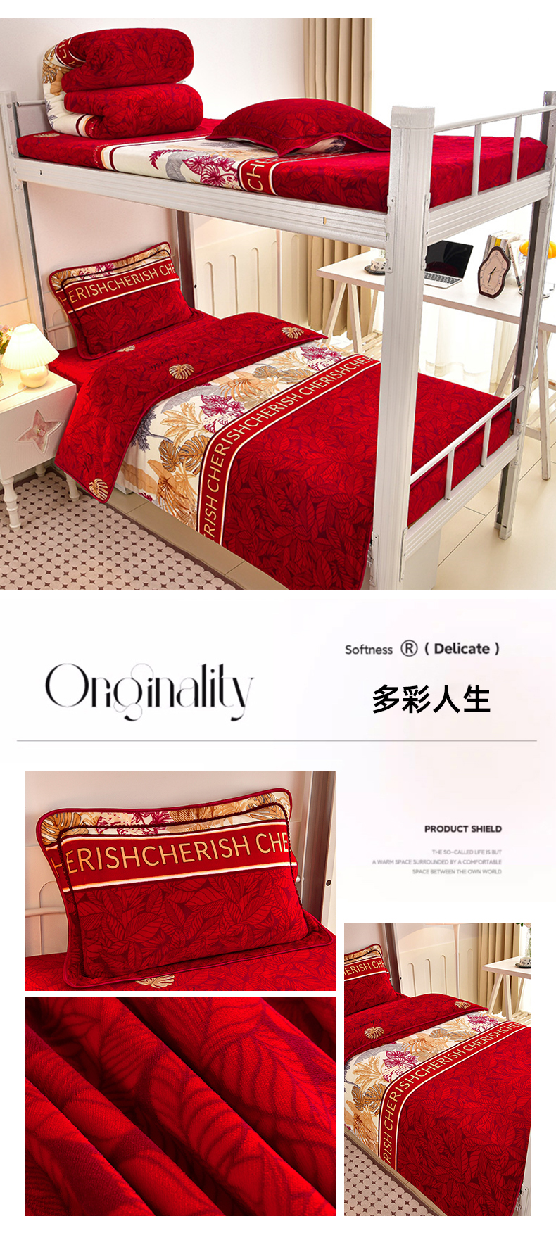 商品名称:硕喜 2025新款学生宿舍床系列牛奶绒学生三件套 多彩人生