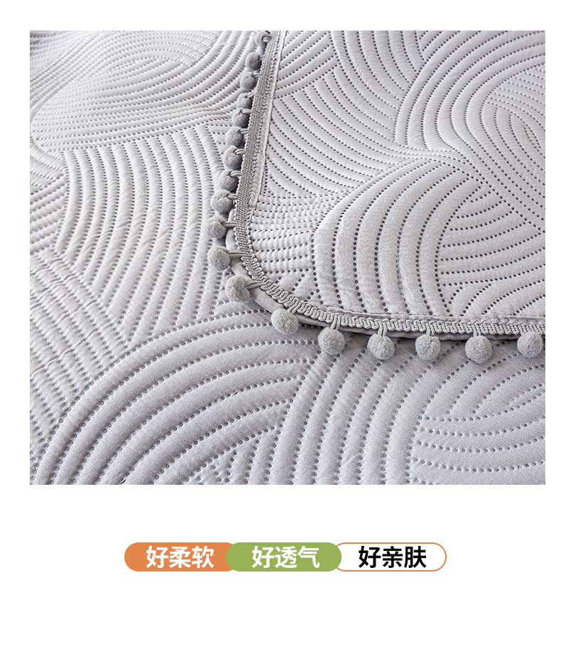 81号家纺 2025新款亲肤水洗棉夹棉四季款床盖三件套 浅灰
