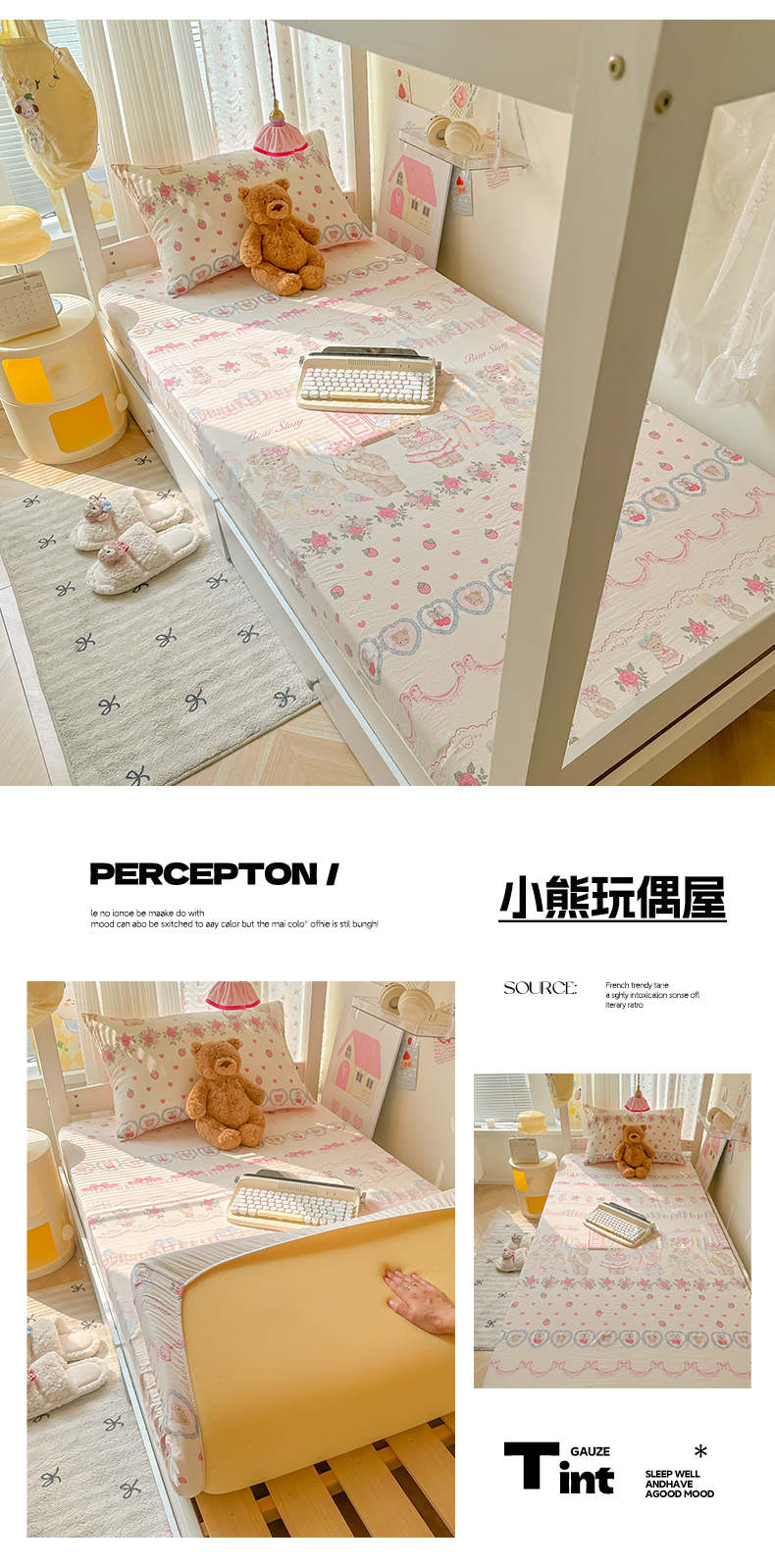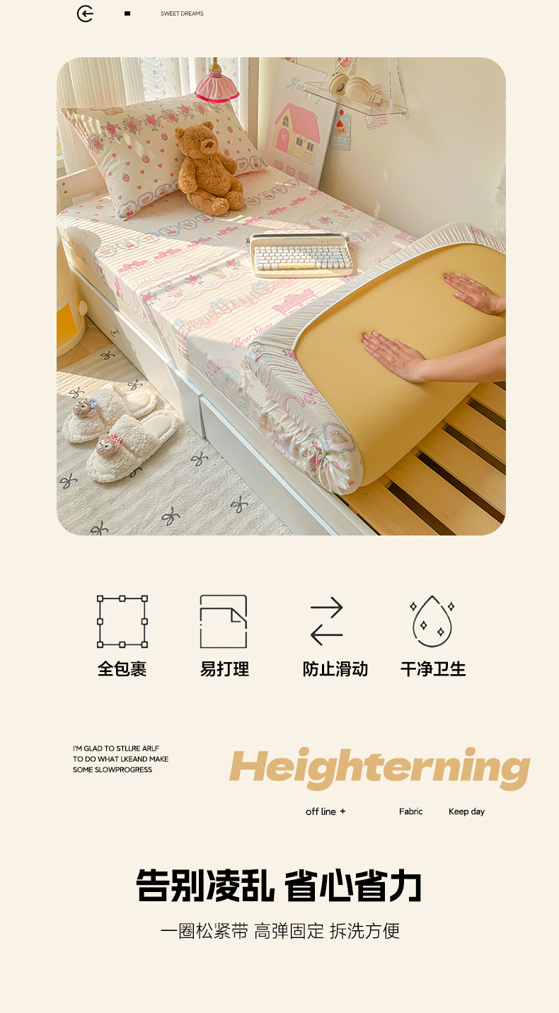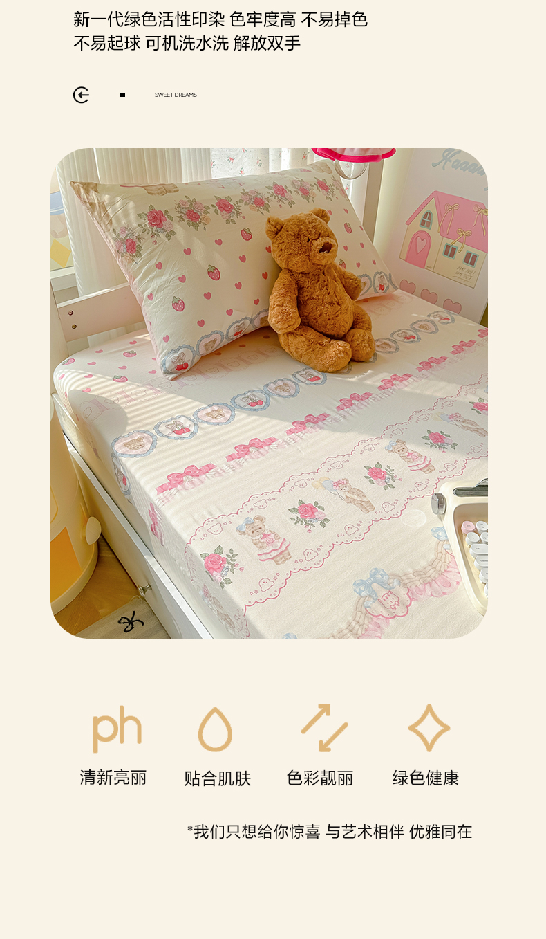 • 91家纺网 家纺一手货源 找家纺 韩巢家纺 2025新款上下铺学生宿舍专用床笠单件寝室高低床热销款防滑床单床套 小熊玩偶屋