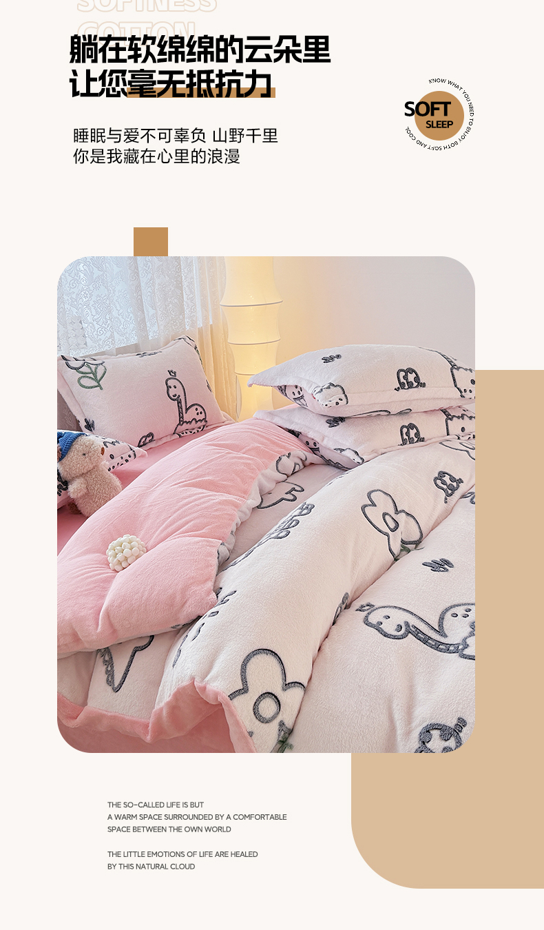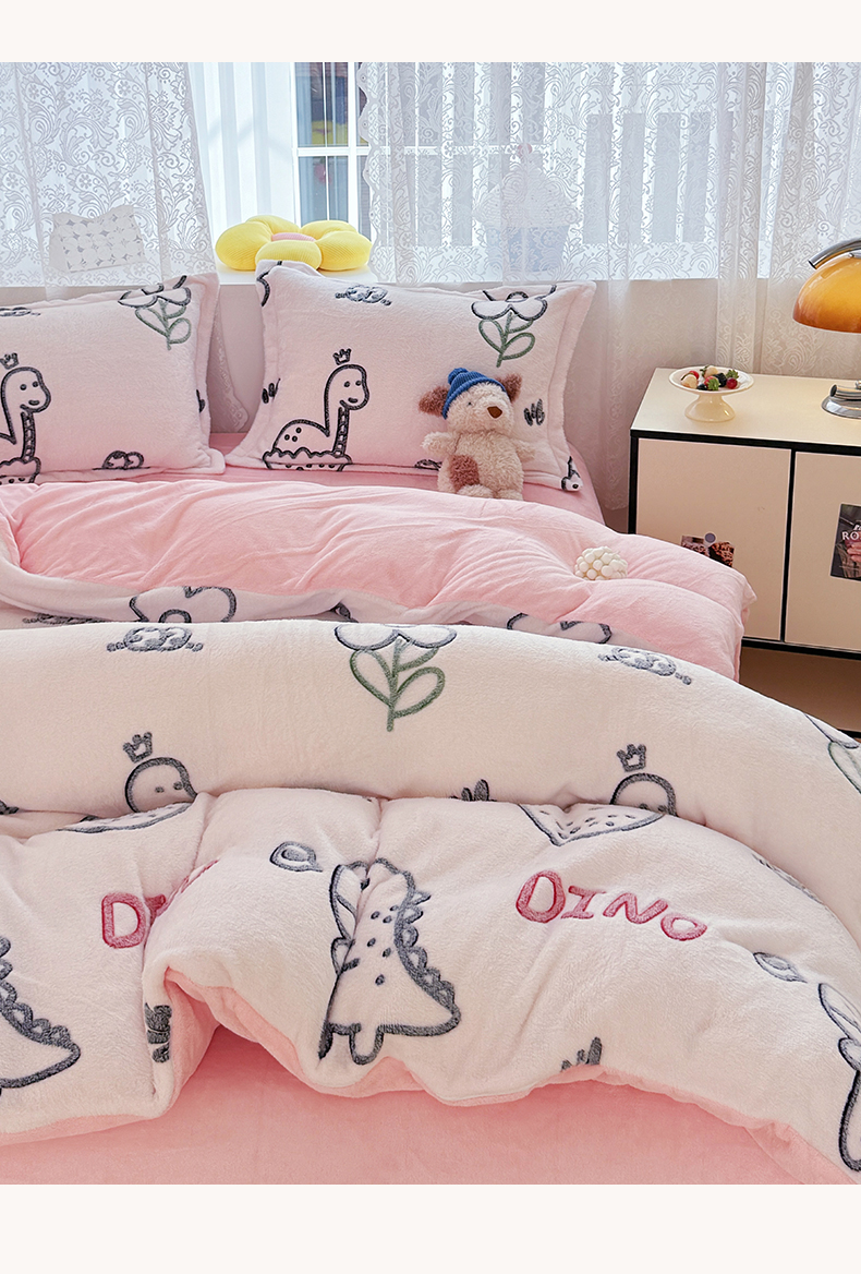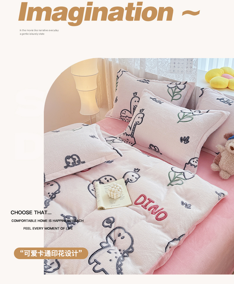 曼町家居 2025新款雪花绒四件套 恐龙乐园