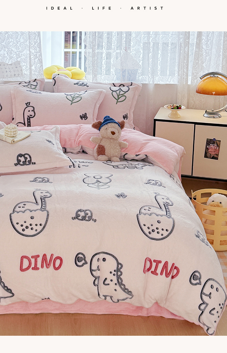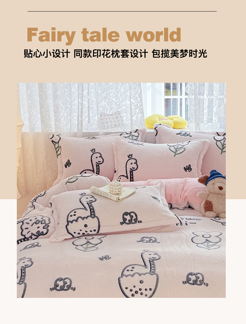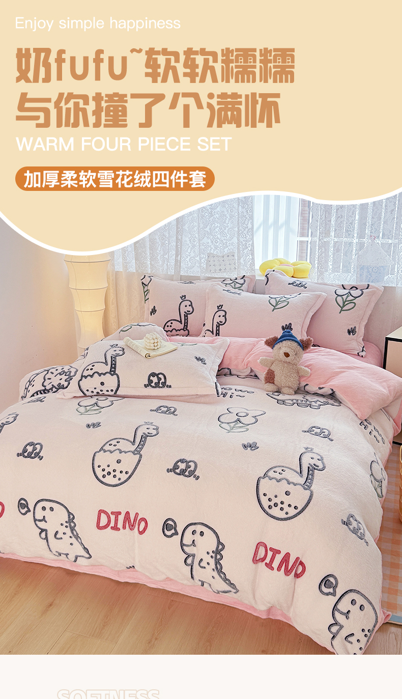 商品名称:曼町家居 2025新款雪花绒四件套 恐龙乐园