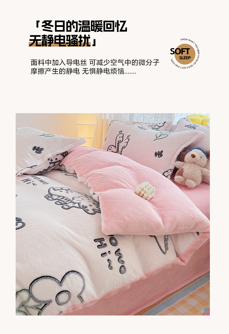 (总)曼町家居 2025新款雪花绒四件套,爱丽丝,恐龙乐园,蓝色大耳狗,牛油果,绅士派对,时空序曲,甜蜜小熊,甜心草莓,熊猫宝贝