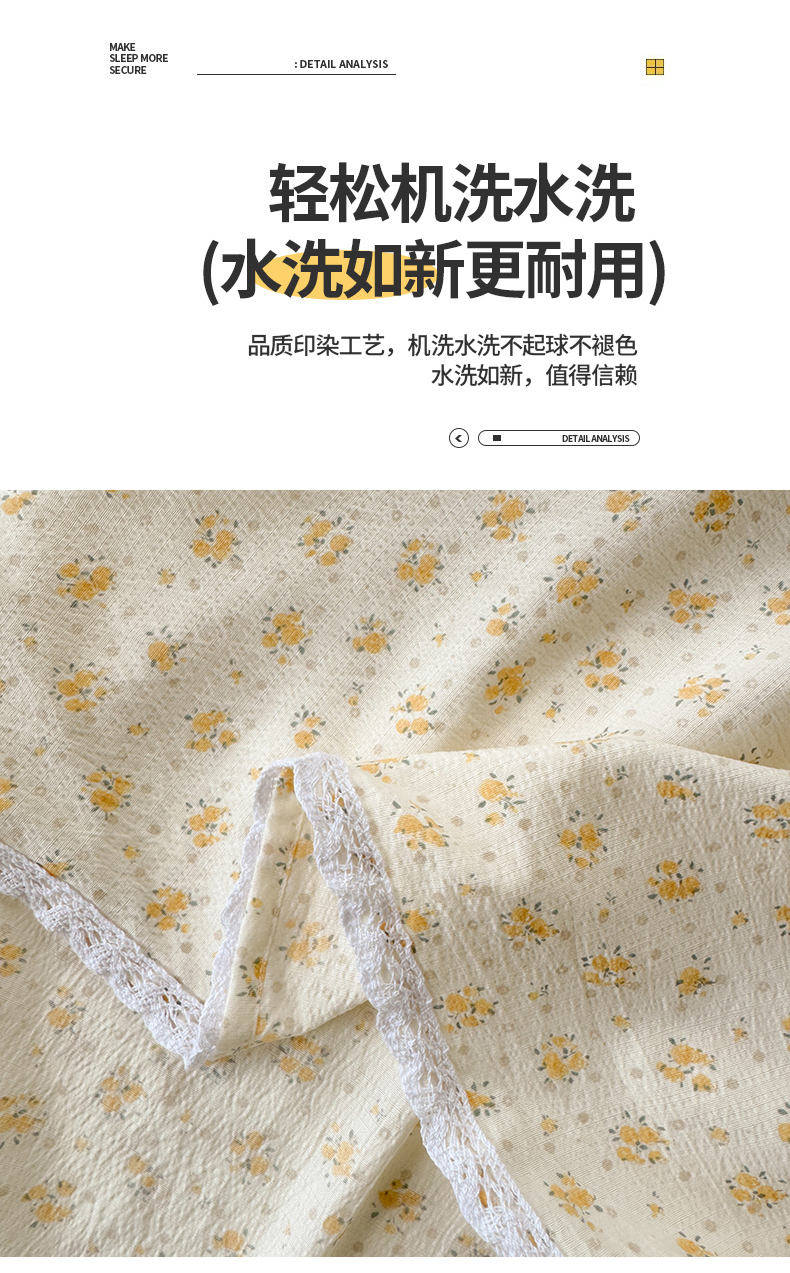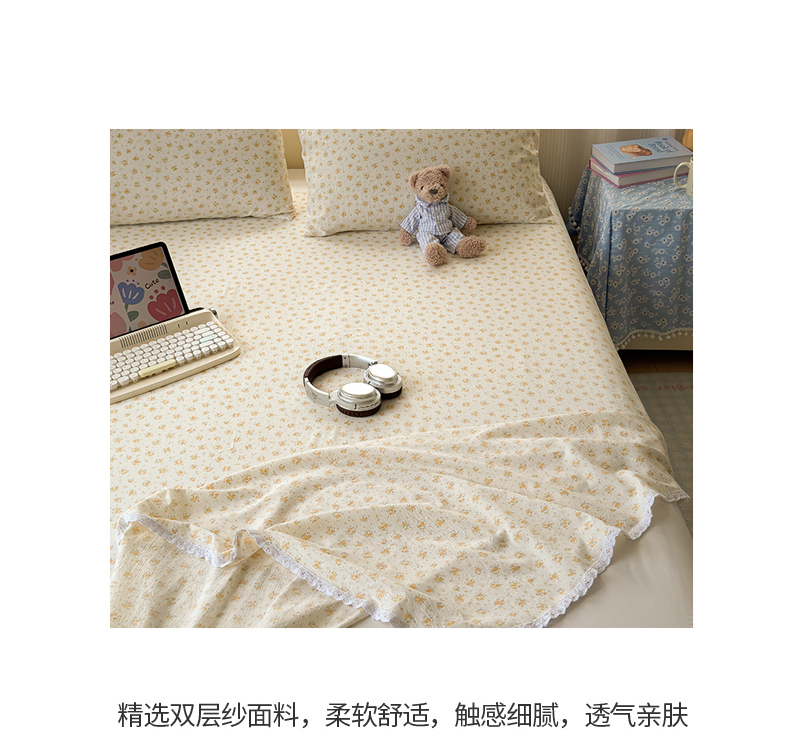 沐芷 2025 A类双层纱花边床单单件 单人双人床单三件套 橘子海