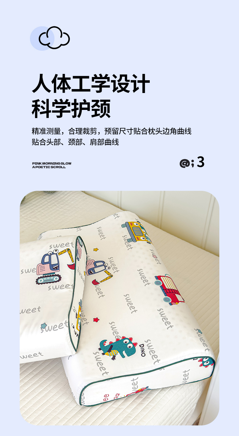 (总)良佐生活 2023新款A类60支全棉贡缎乳胶枕枕套儿童橡胶枕头套高低,口袋熊,恐龙宝宝,开心熊 粉,冰淇淋,恐龙乐园,花仙兔,贝塔 粉,挖掘车