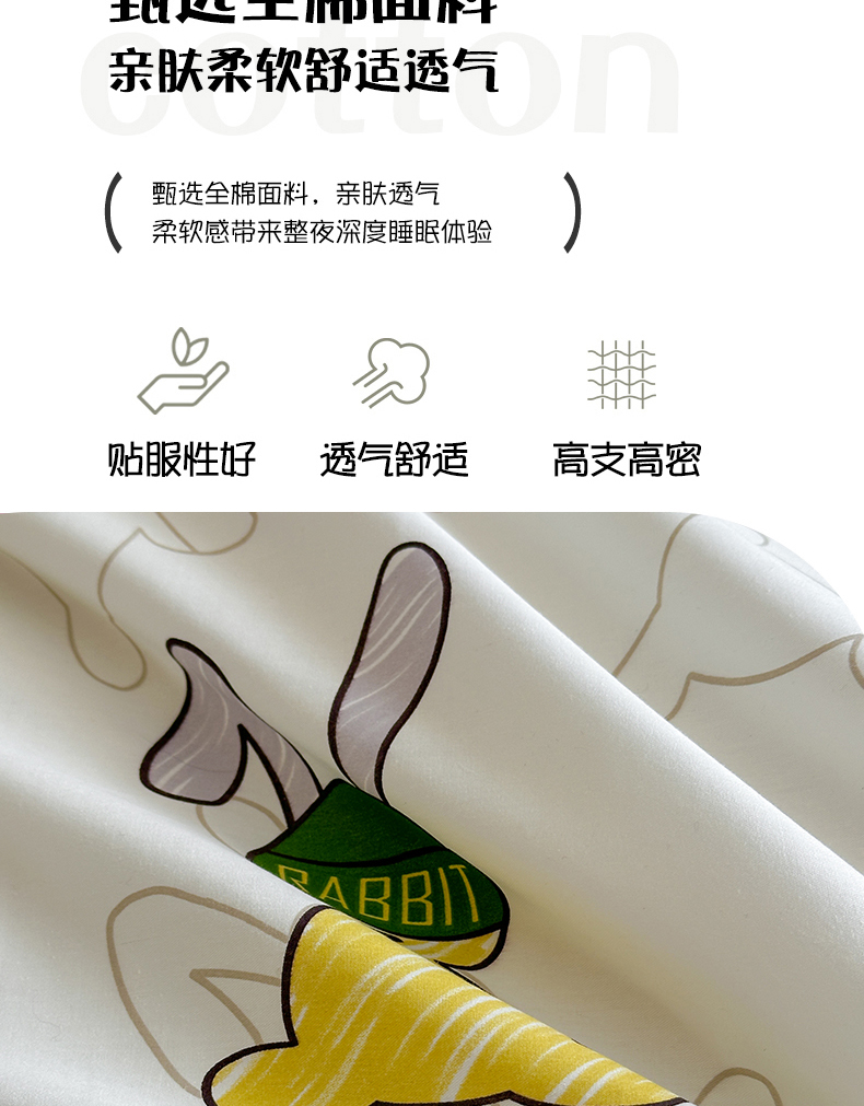 商品名称:麦田家纺 2025新款40支13372全棉独版印花吊边床单款四件套(提供买家秀)吊边床单款 迷藏巴兔