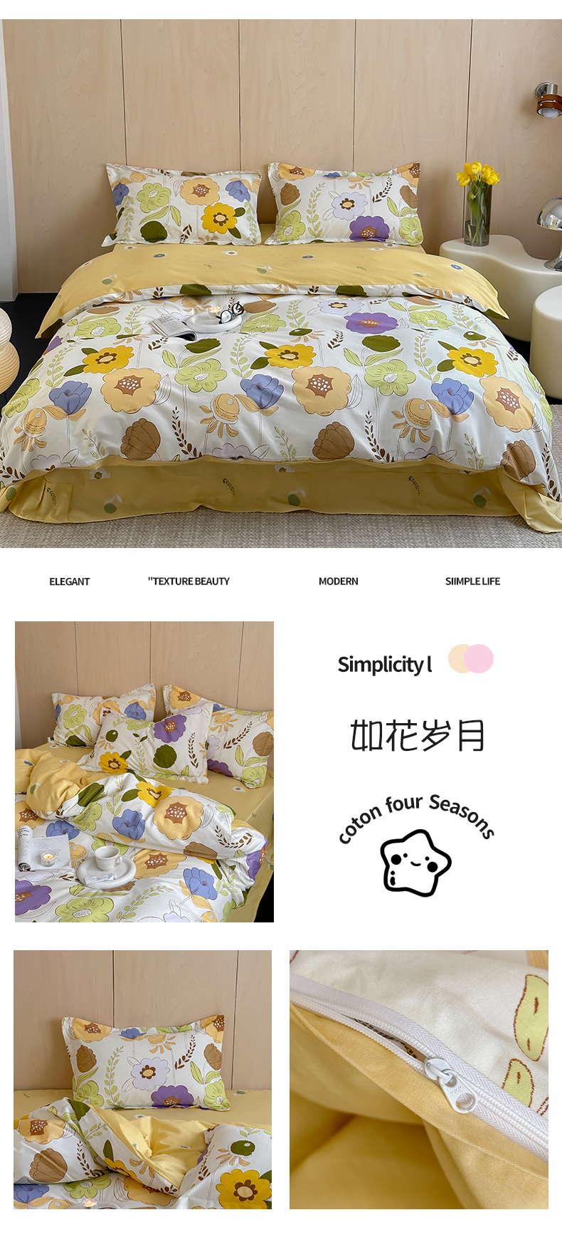 (总)麦田家纺 2025新款A类云感木棉皱皱双层纱印花四件套,春意浓,繁花,花颜,简意,开心小熊,腊肠犬,浪漫花语,免挽星辰,甜心格,小蓝町,樱桃格,紫韵