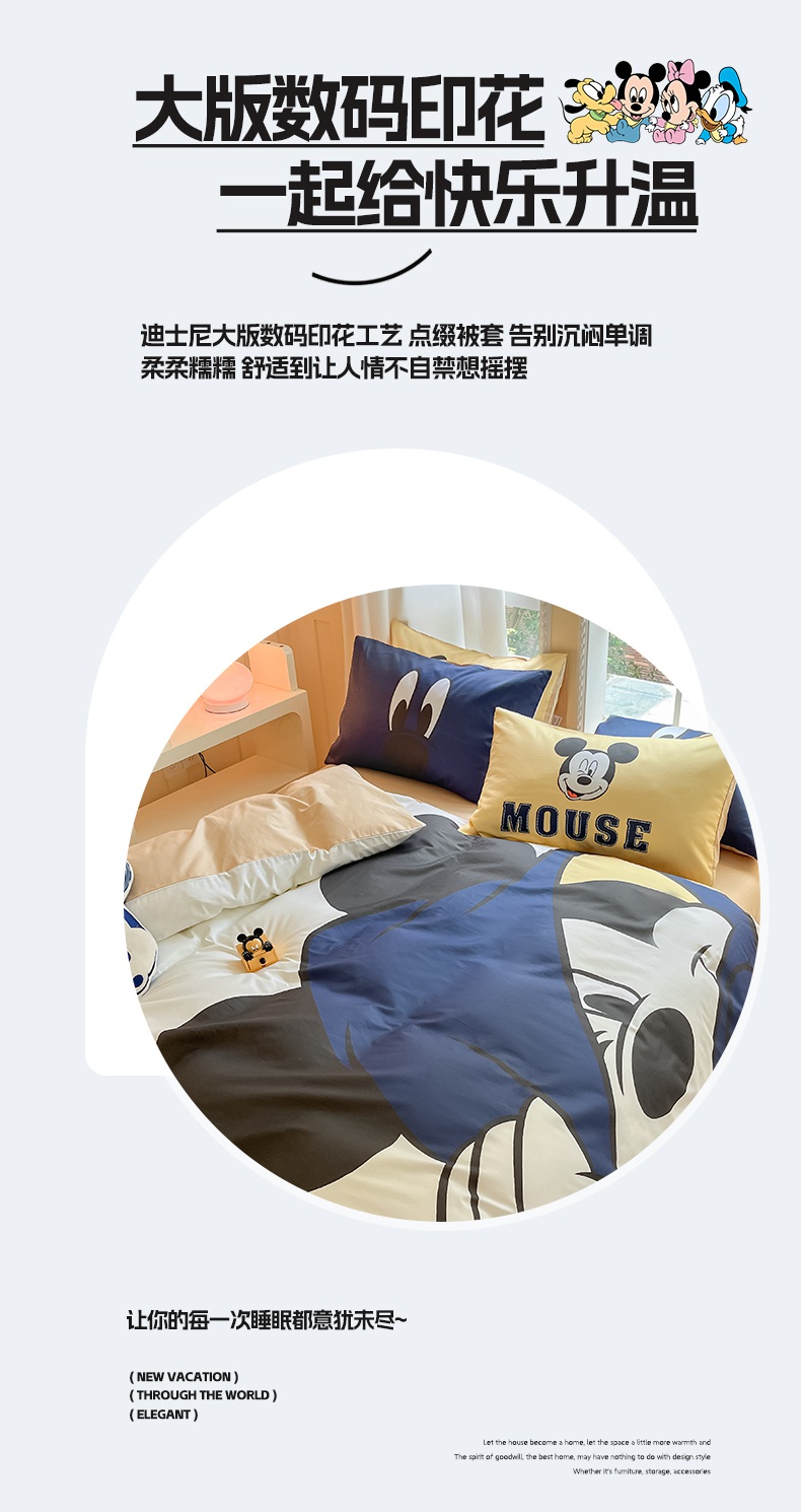 麦田家纺 2025新款全棉迪士尼大板印花卡通四件套 hello米奇