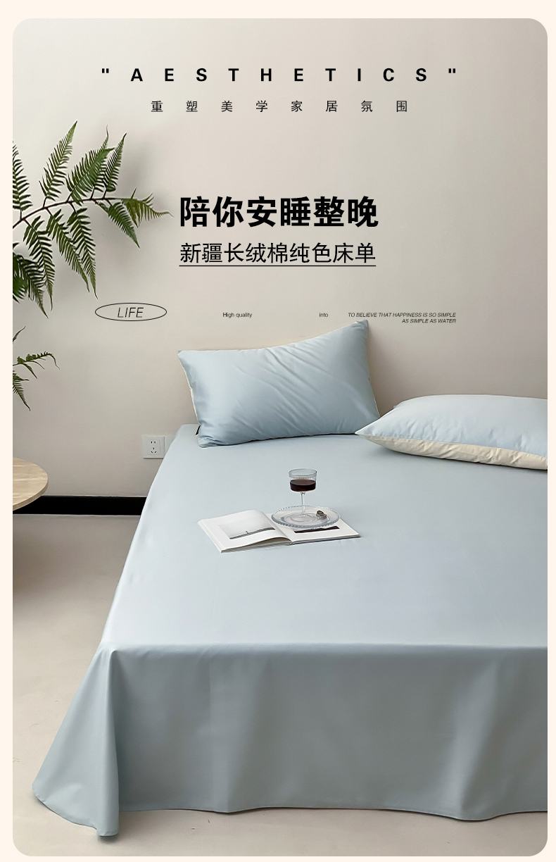 商品名称:云栖家居 2025新款全棉纯色长绒棉纯棉单品系列床单单件床单单品-单床单 浅云兰