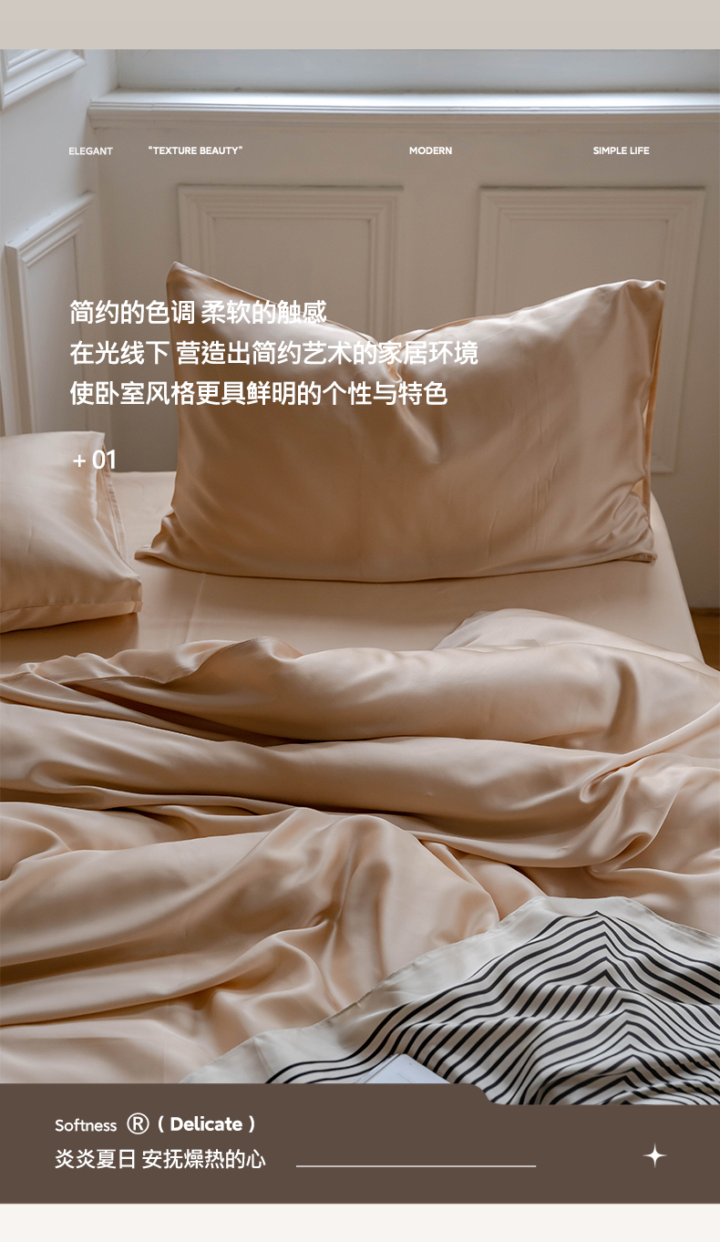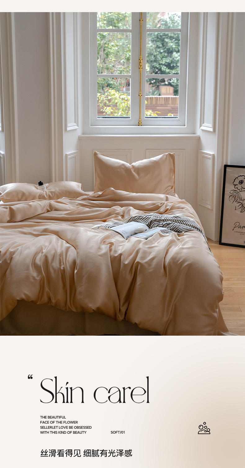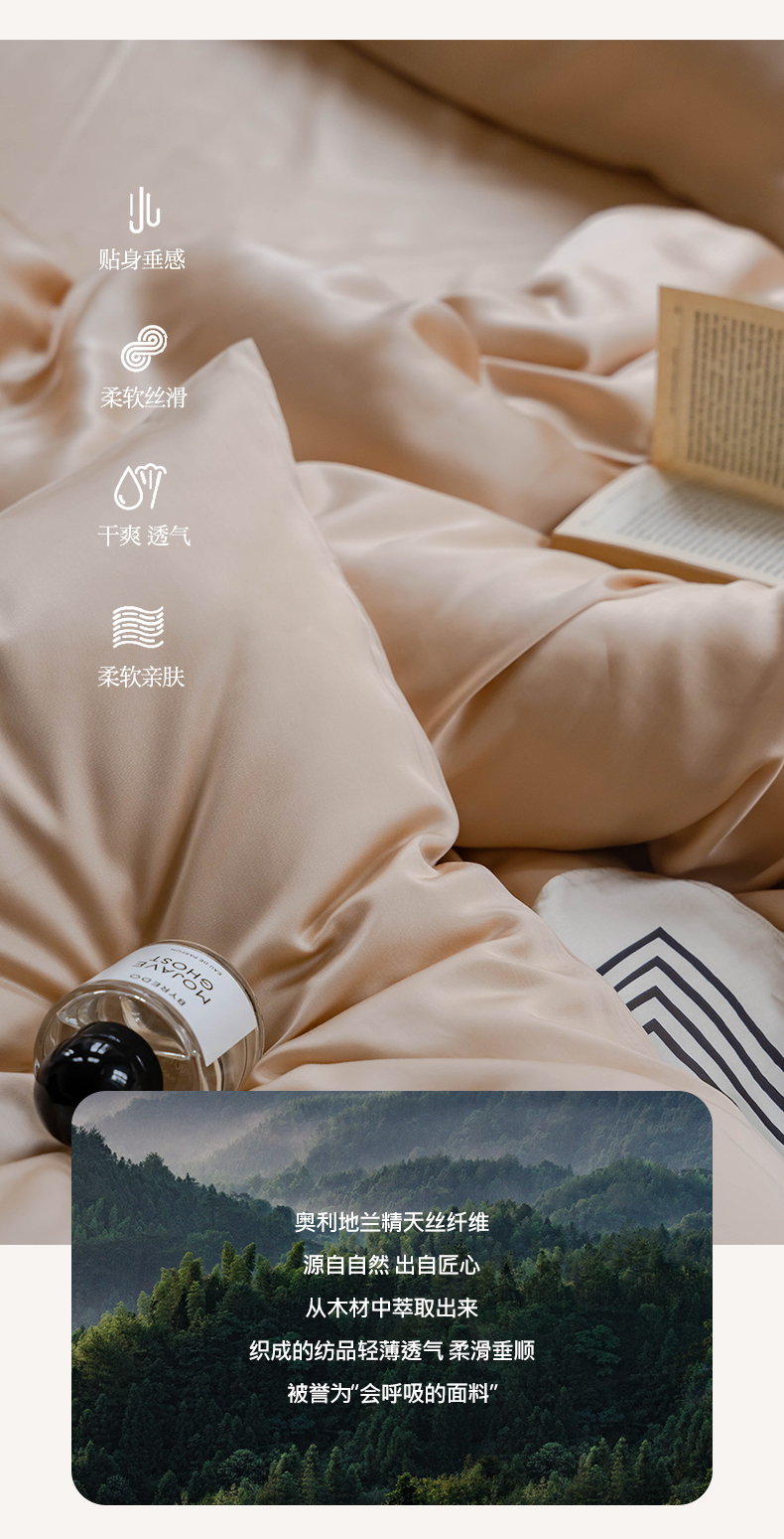 商品名称:麦田家纺 2025新款A类60S纯色兰精天丝四件套 沙茶色