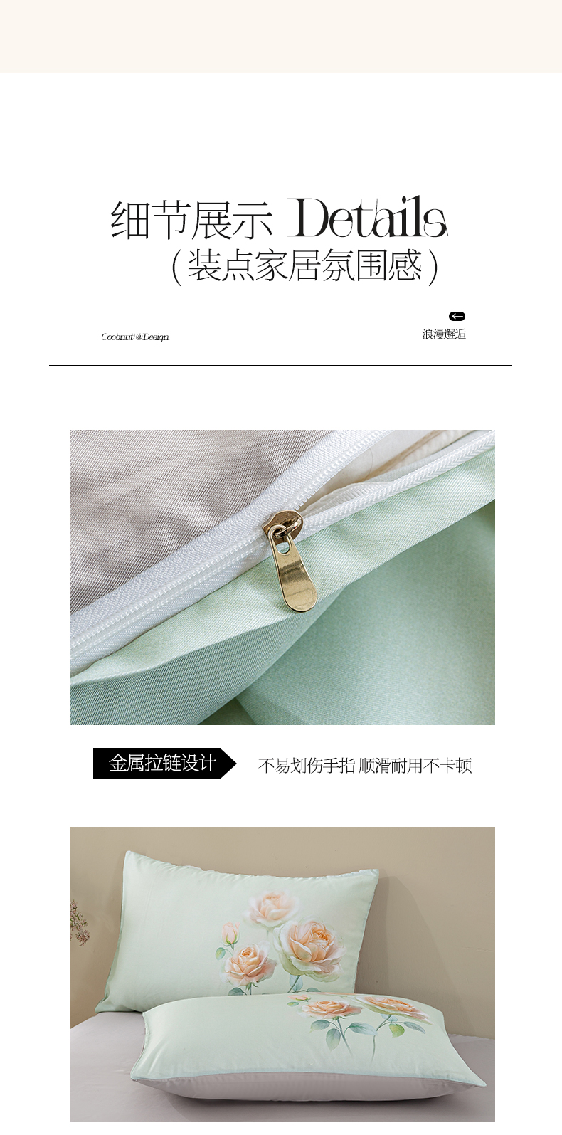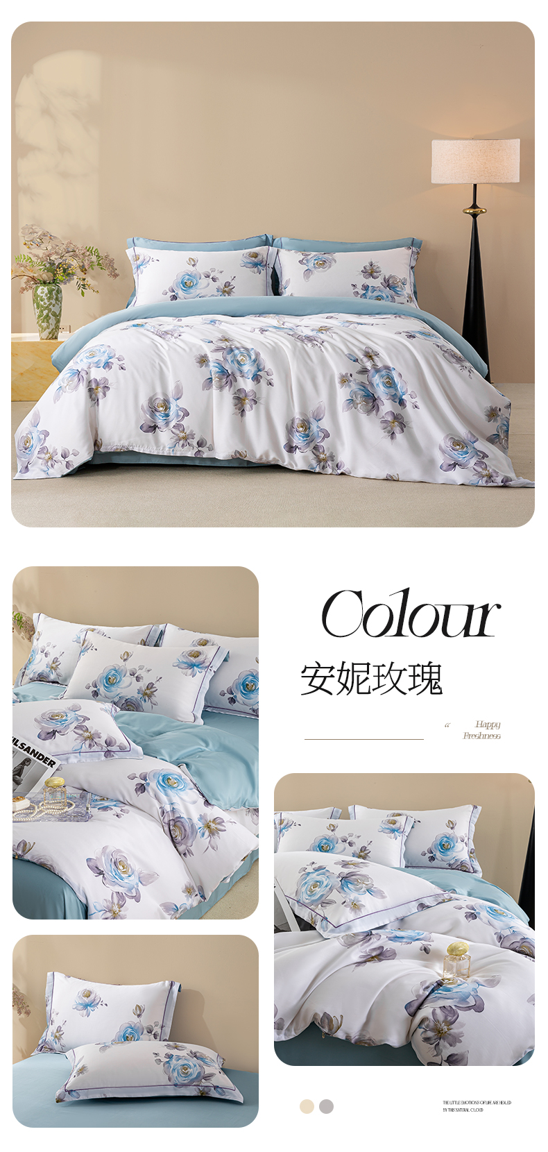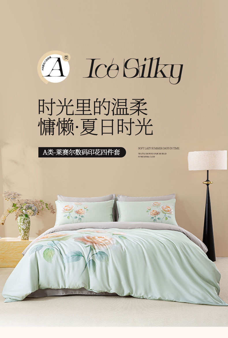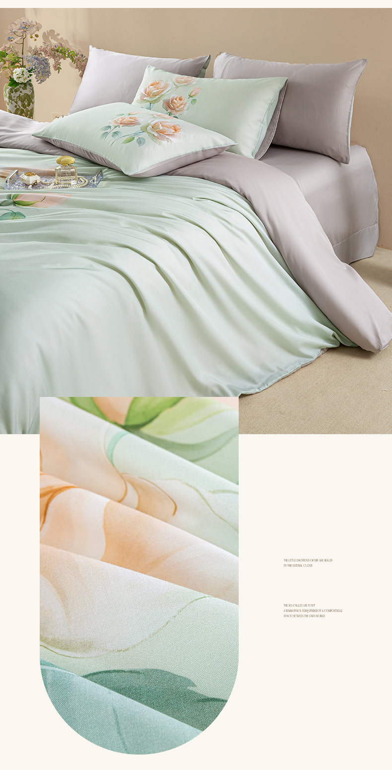 商品名称:麦田家纺 2025新款50S莱赛尔天丝印花四件套 览芳华-绿