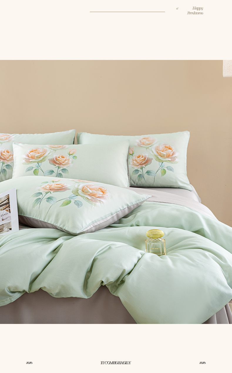 麦田家纺 2025新款50S莱赛尔天丝印花四件套 览芳华-绿