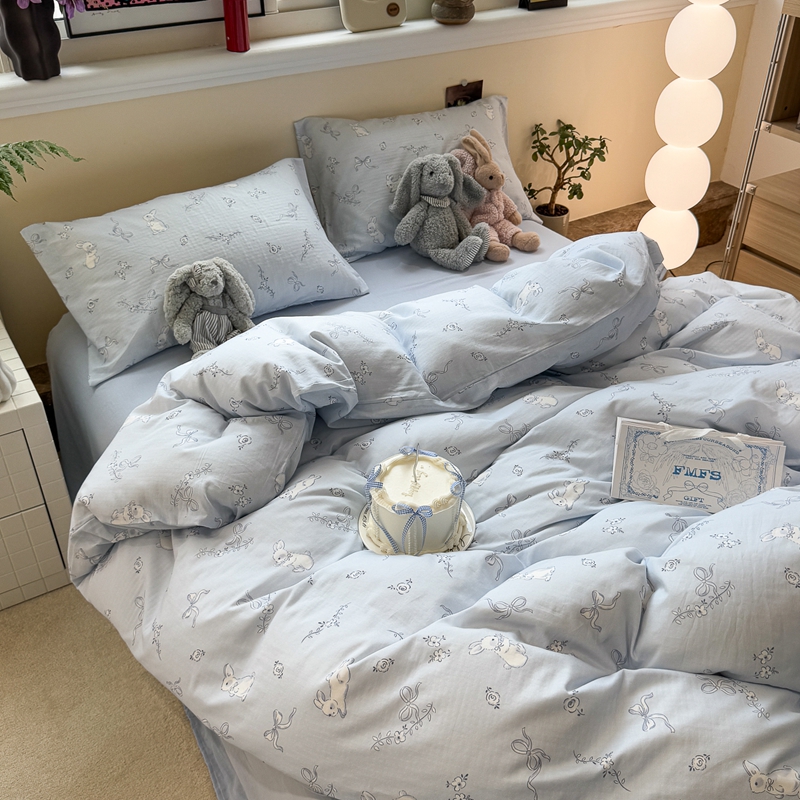 当前位置: 91家纺网 > 商品网购 > 床品套件 > 四件套 > 双层纱四件套 > 慕尚家纺 2025新款全棉纯棉母婴双层纱四件套 丝带小兔