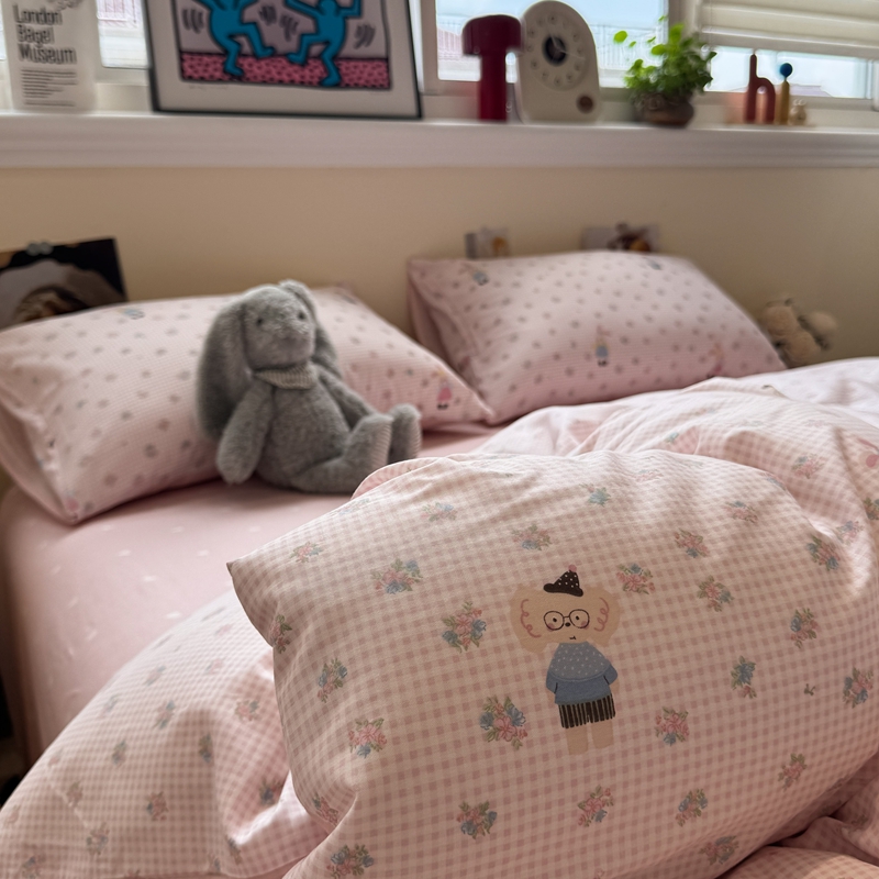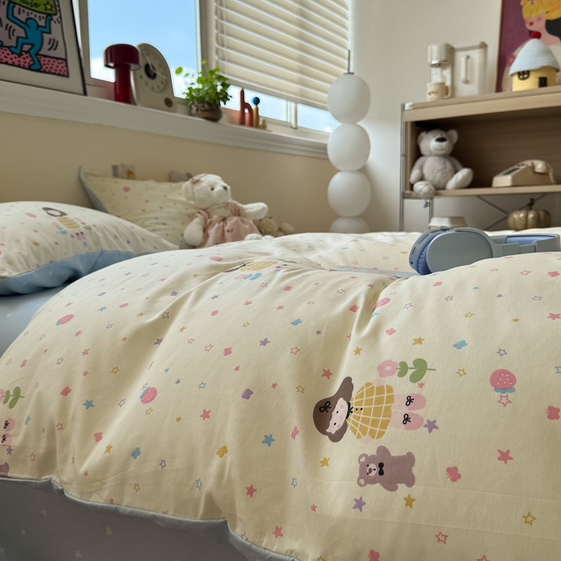 (总)慕尚家纺 2025新款全棉印花学生三件套套件,艾米熊,彩色爱心狗,铃兰花,美食派对,萌宠乐园,书生猫咪,桃心狗,汪可爱,旺旺,樱桃