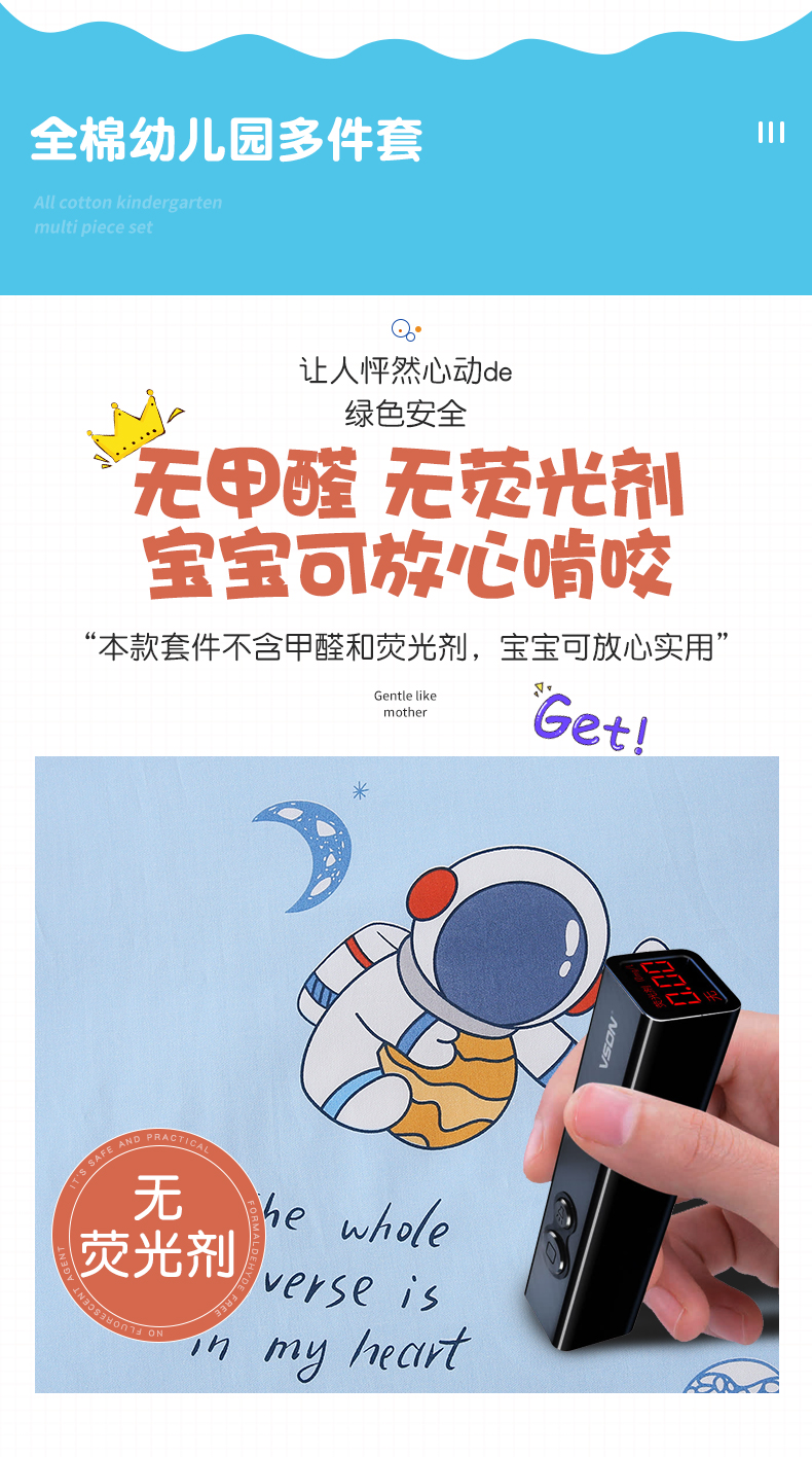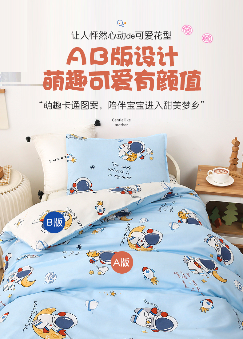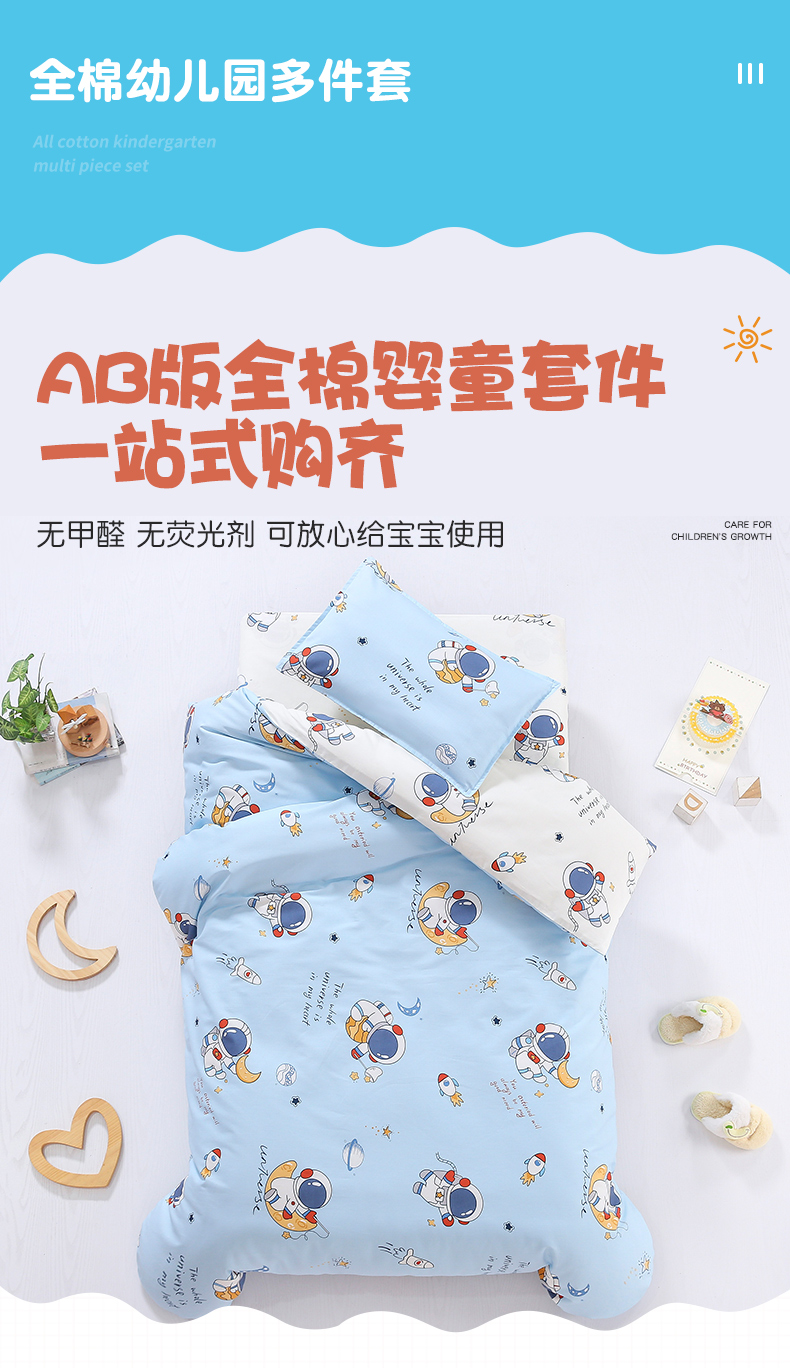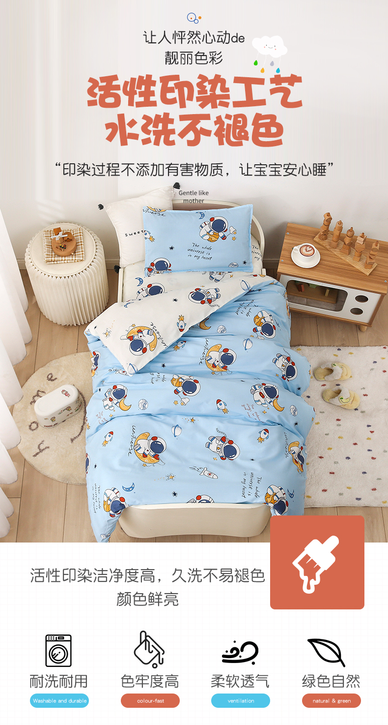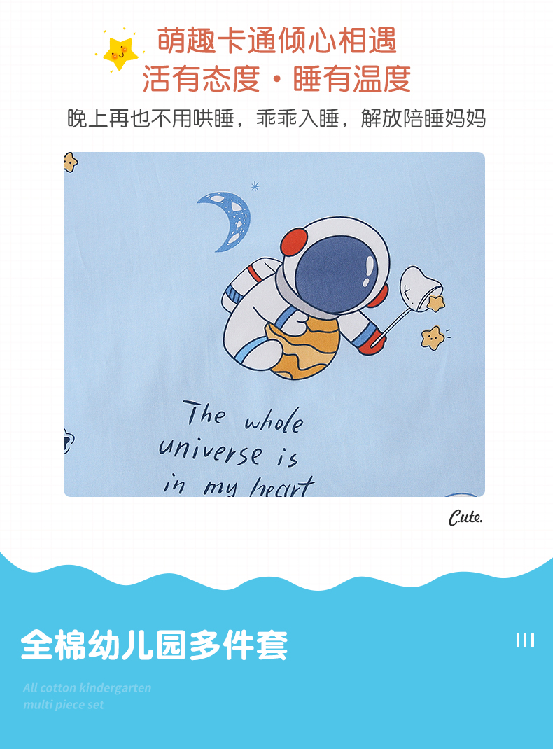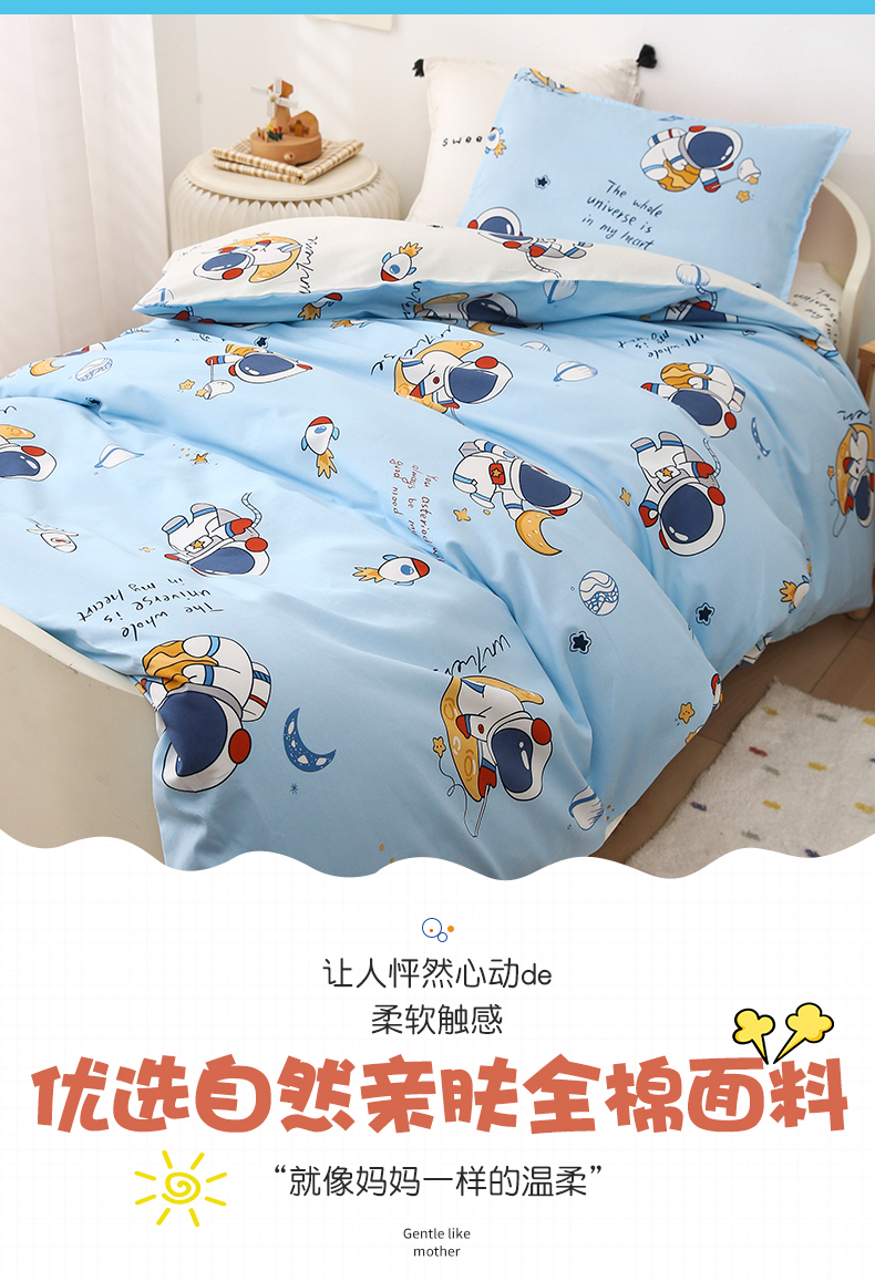 当前位置: 91家纺网 > 商品网购 > 床品套件 > 三件套 > 鱼宝 2025新款全棉幼儿园套件 三件套—童真系列 太空之旅