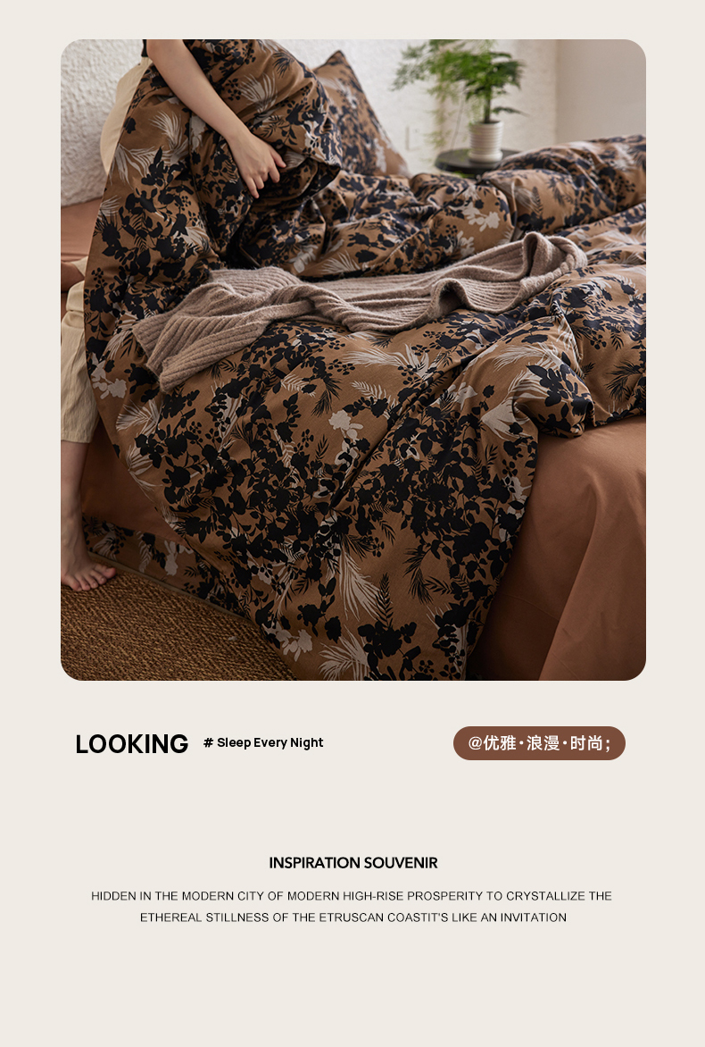 千朵森 2025新款全棉高密陶瓷磨毛印花四件套 左秋