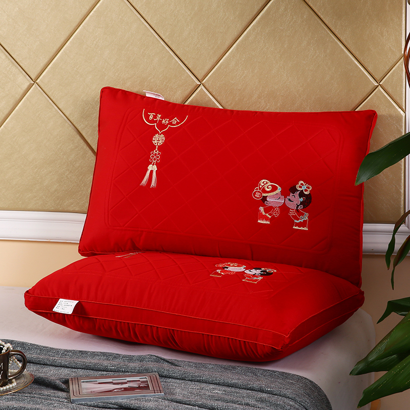 永乐枕芯 2025新款婚庆枕芯刺绣款羽丝绒枕头 喜结连理