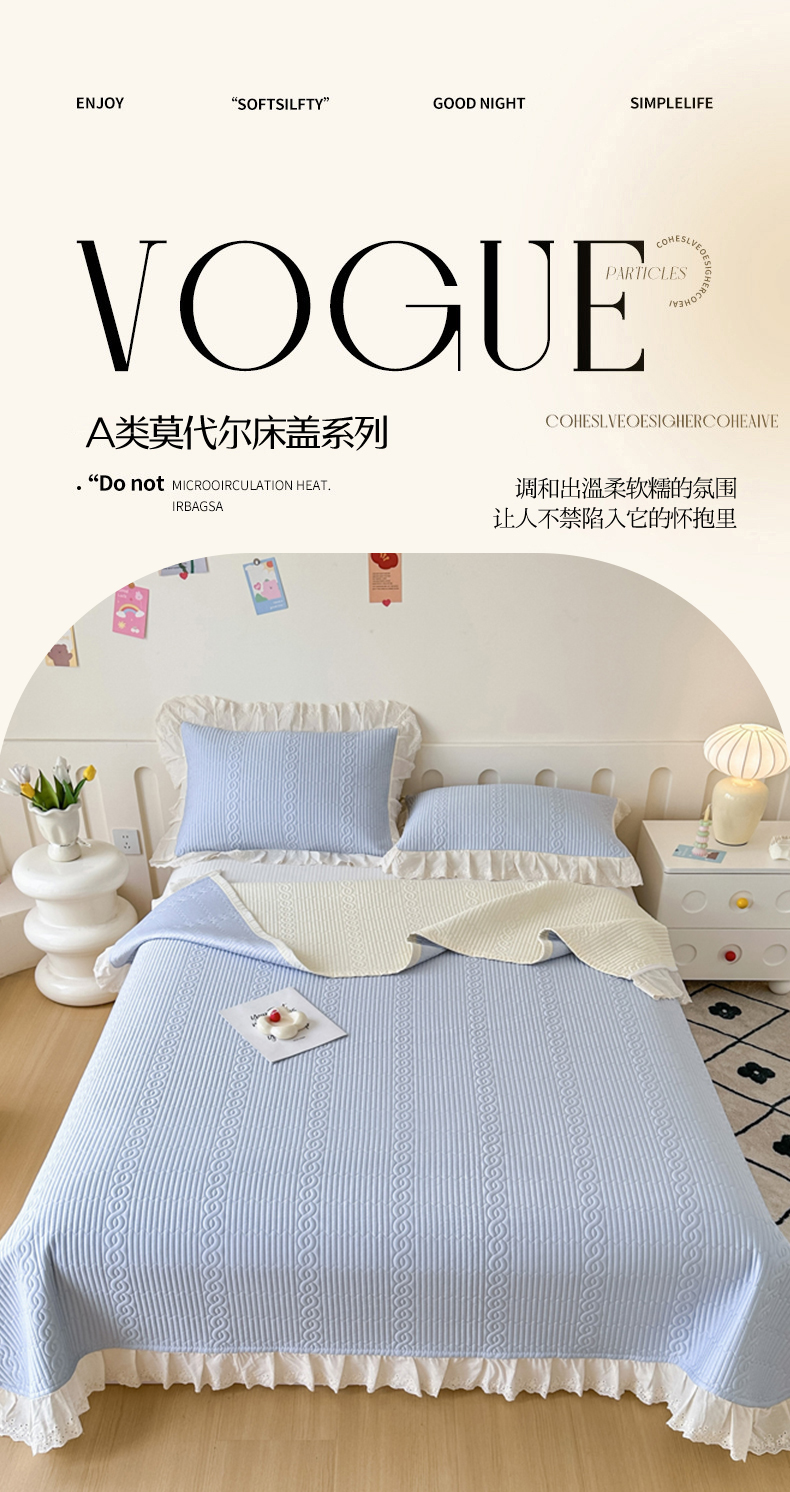 • 91家纺网 家纺一手货源 找家纺 岚吉家纺 2025新款莫代尔印花床盖 天青色