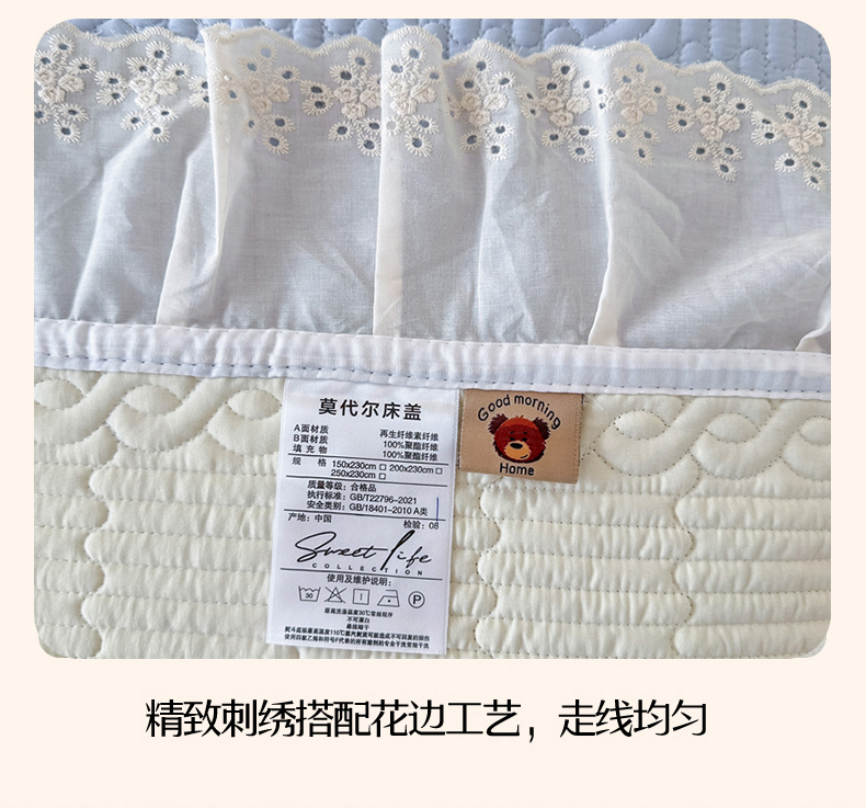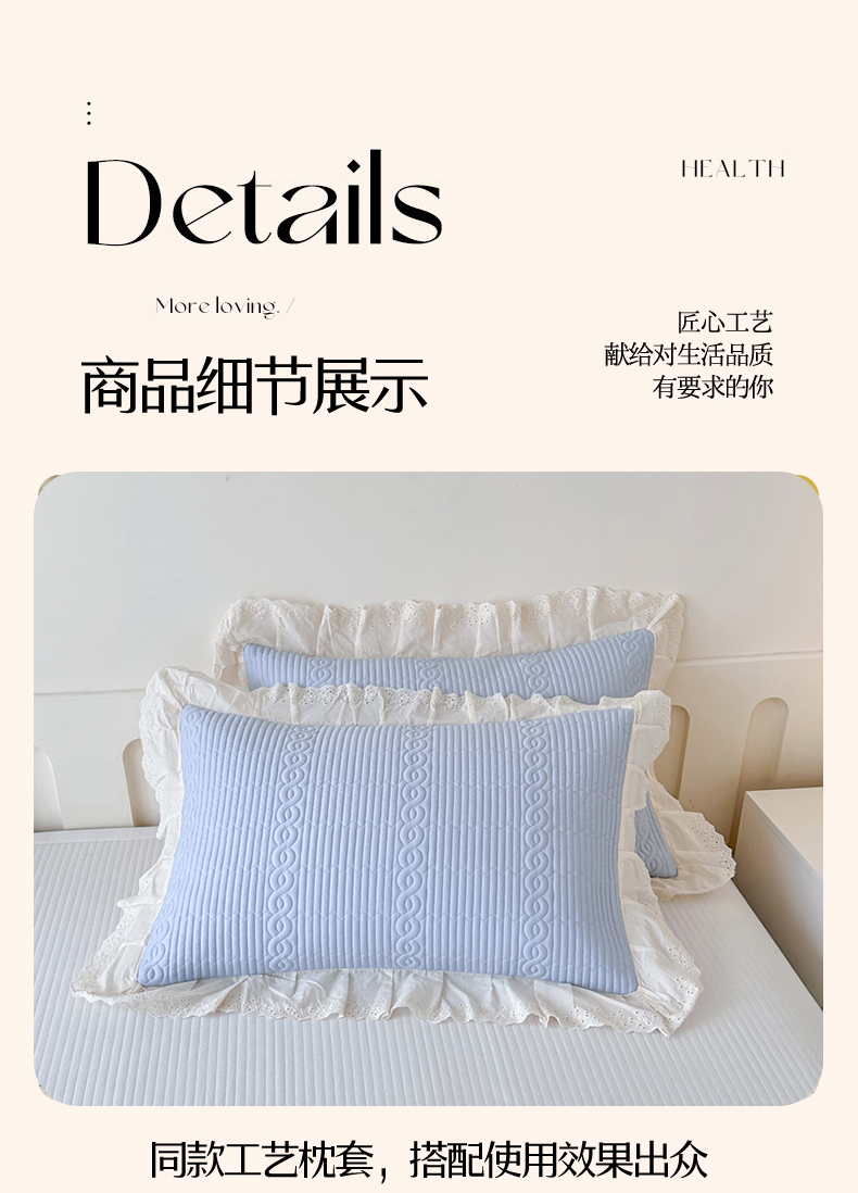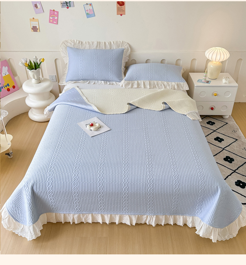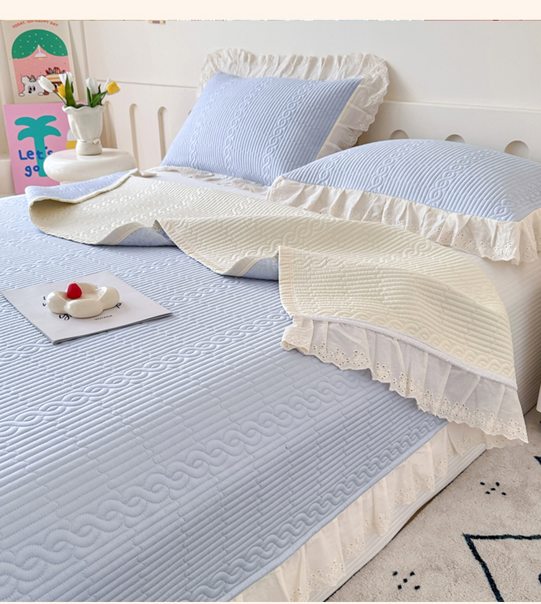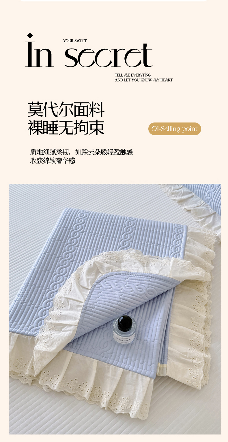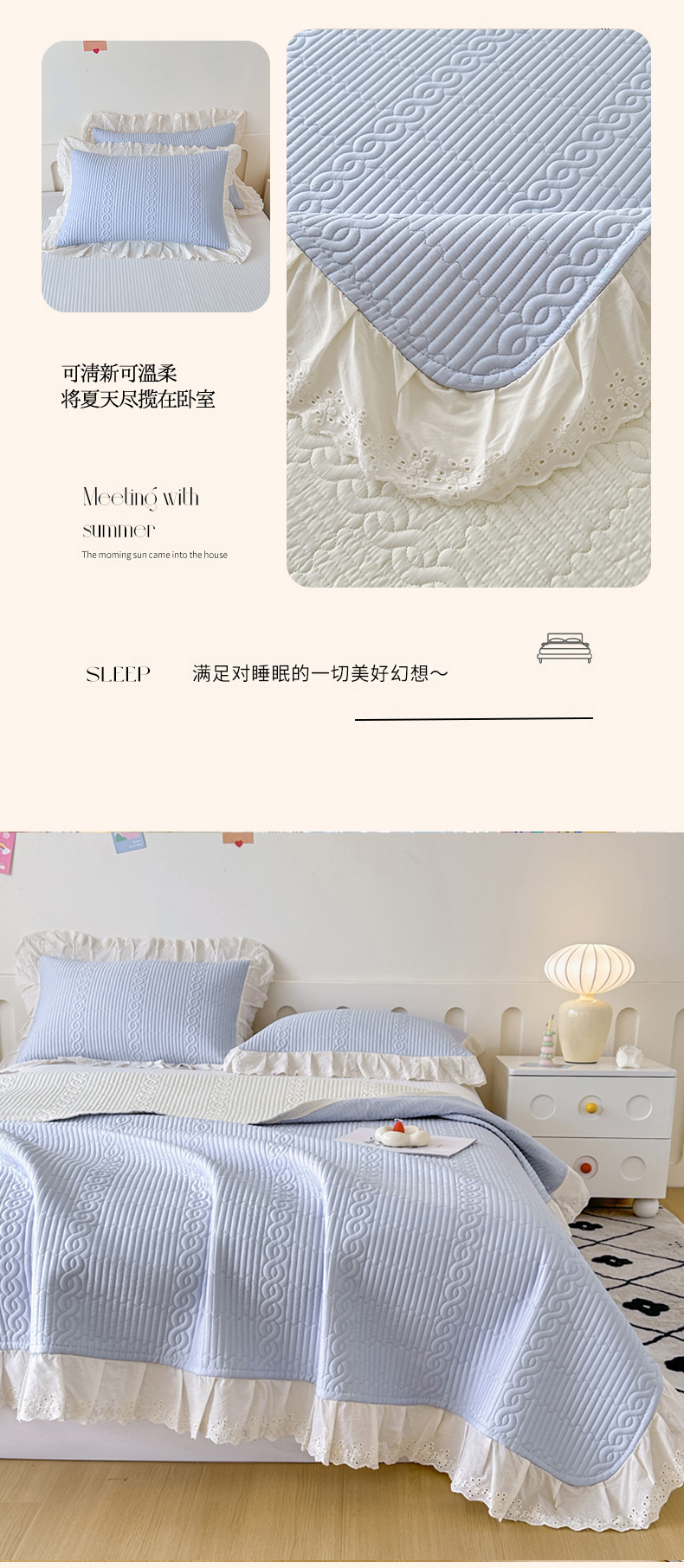 • 91家纺网 家纺一手货源 找家纺 (总)岚吉 2025新款莫代尔纯色小花边床盖三件套,白桃粉,海风蓝,皓月黄,奶油绿,天青色,珍珠灰