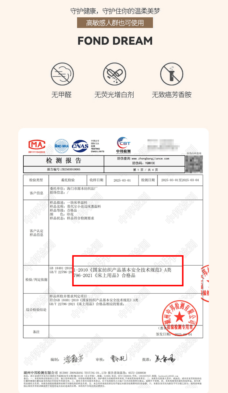 4、通州区市场监管局川姜分局友情提醒:近期针对抗静电,无静电,抗菌防螨,及有关舒适度,百分比的举报高发。为不影响商品正常销售,请各商家高度重视,自检自查及时整改,谢谢配合!