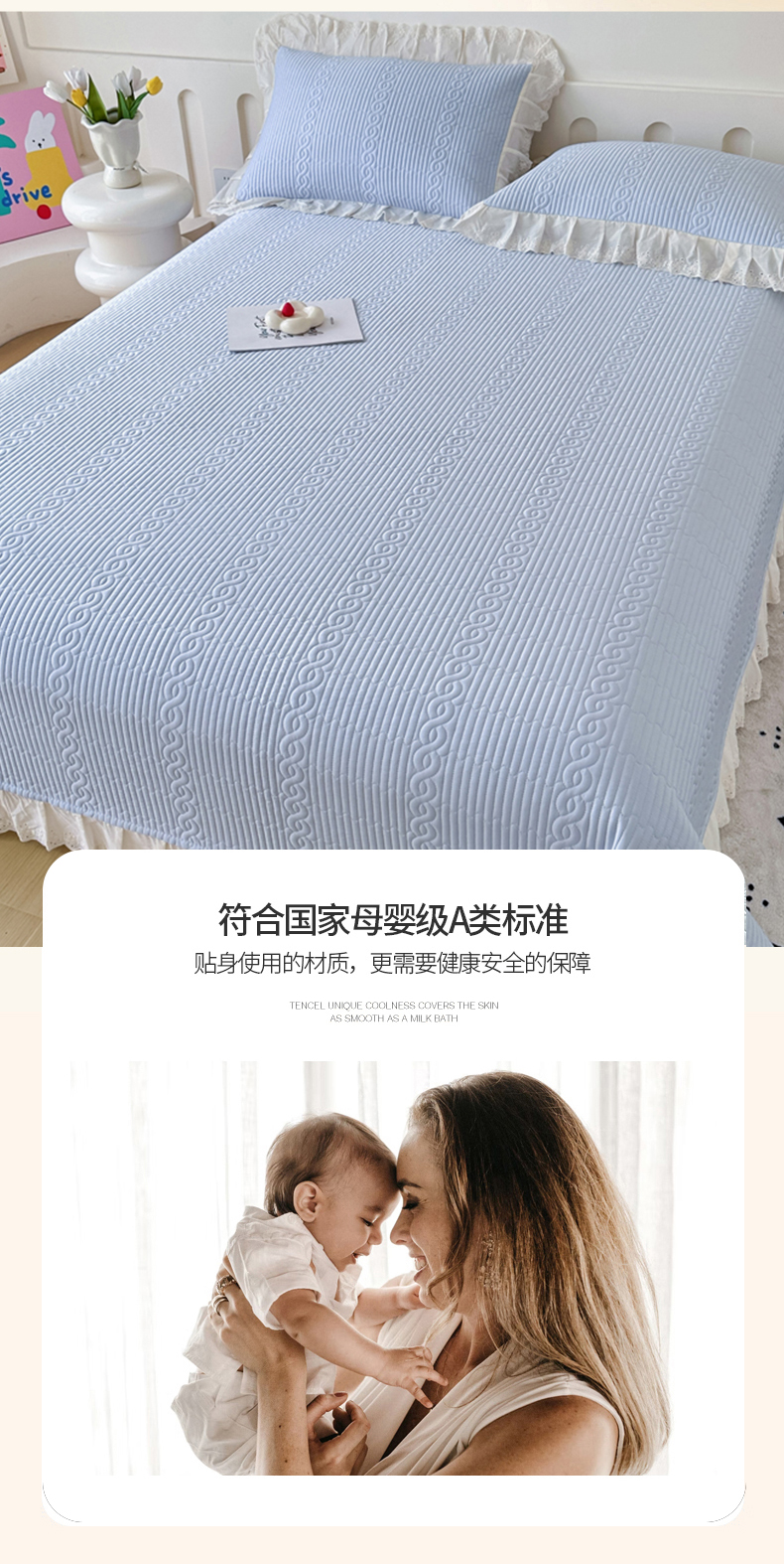 岚吉家纺 2025新款莫代尔印花床盖 天青色