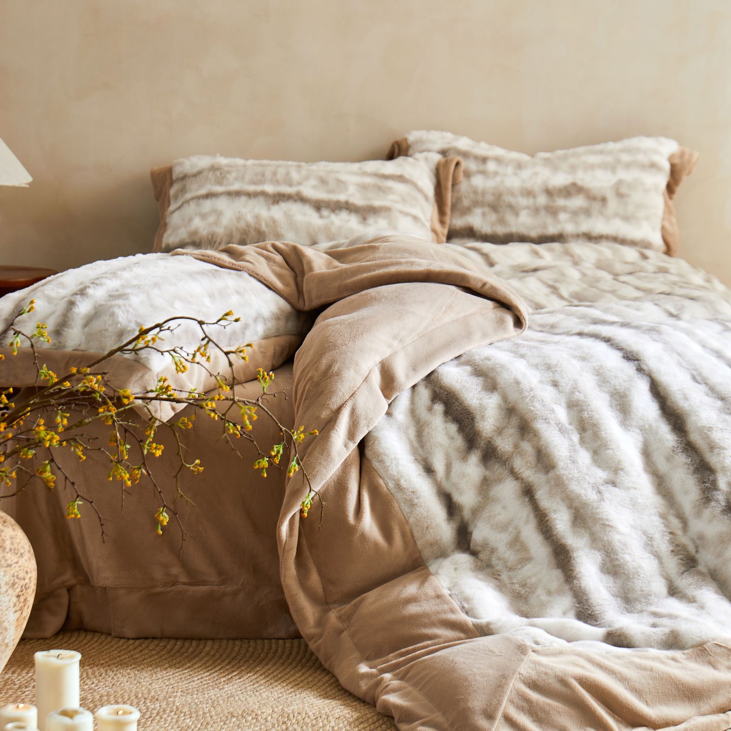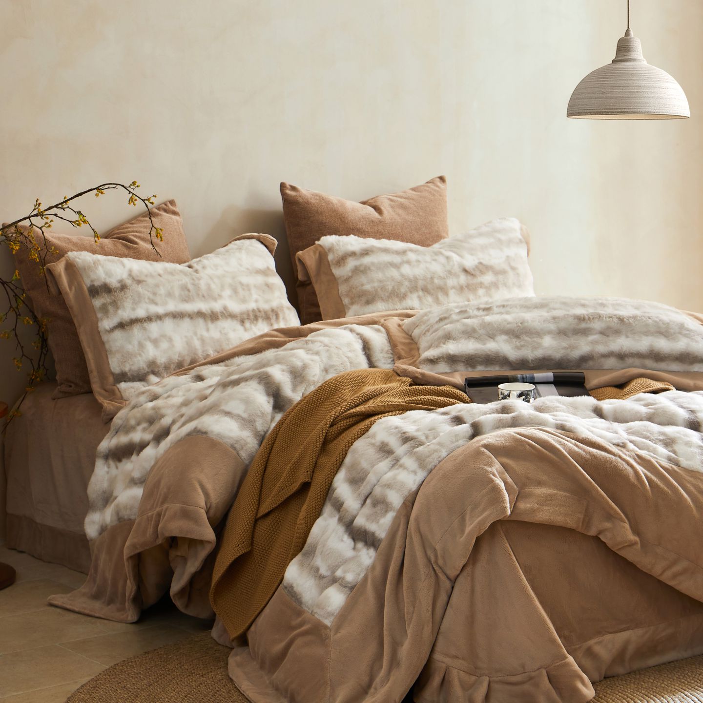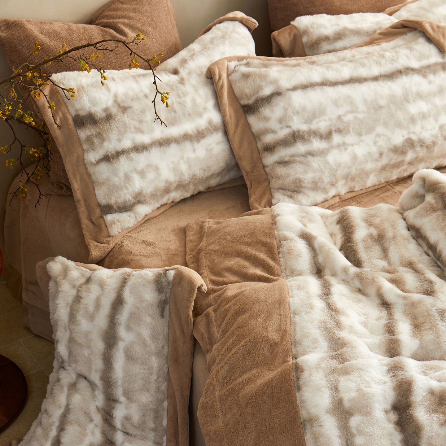 商品名称:佳汐蓝家纺 2025新款A类牛奶绒四件套-闪电纹兔毛绒系列 浅咖(拿铁咖)