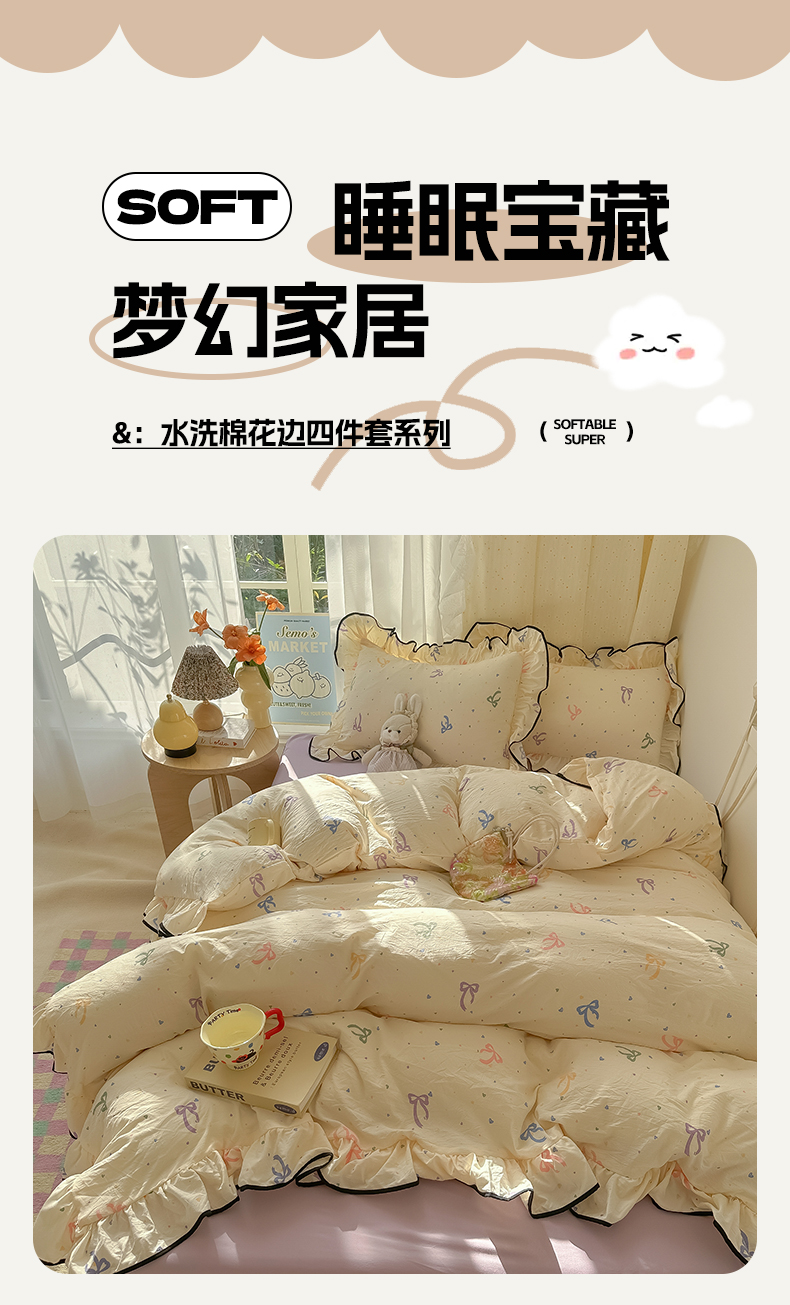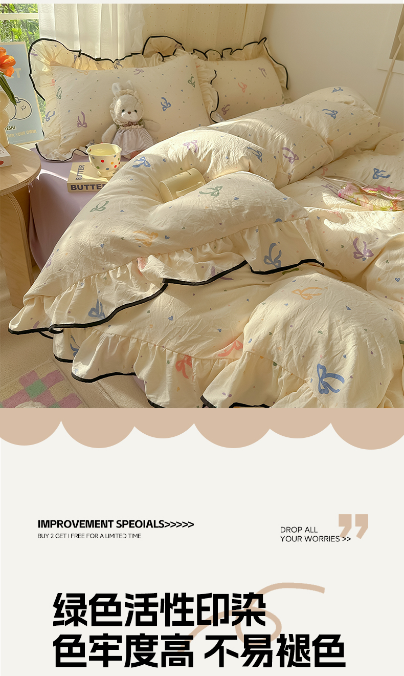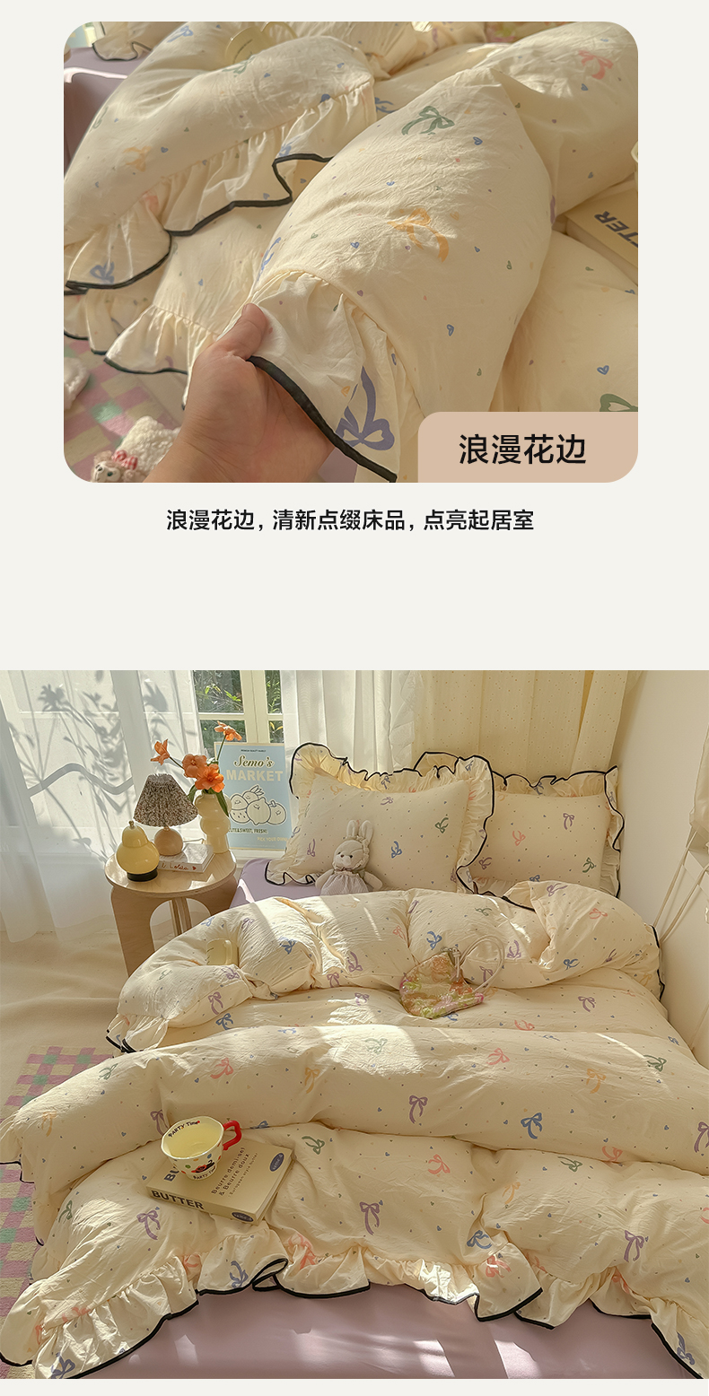 当前位置: 91家纺网 > 商品网购 > 床品套件 > 四件套 > 其它四件套 > 韩巢家纺 2025新款水洗棉大花边被套四件套直播热销款学生宿舍被罩床单三件套(提供卖家秀) 星梦蝶结【大花边款】