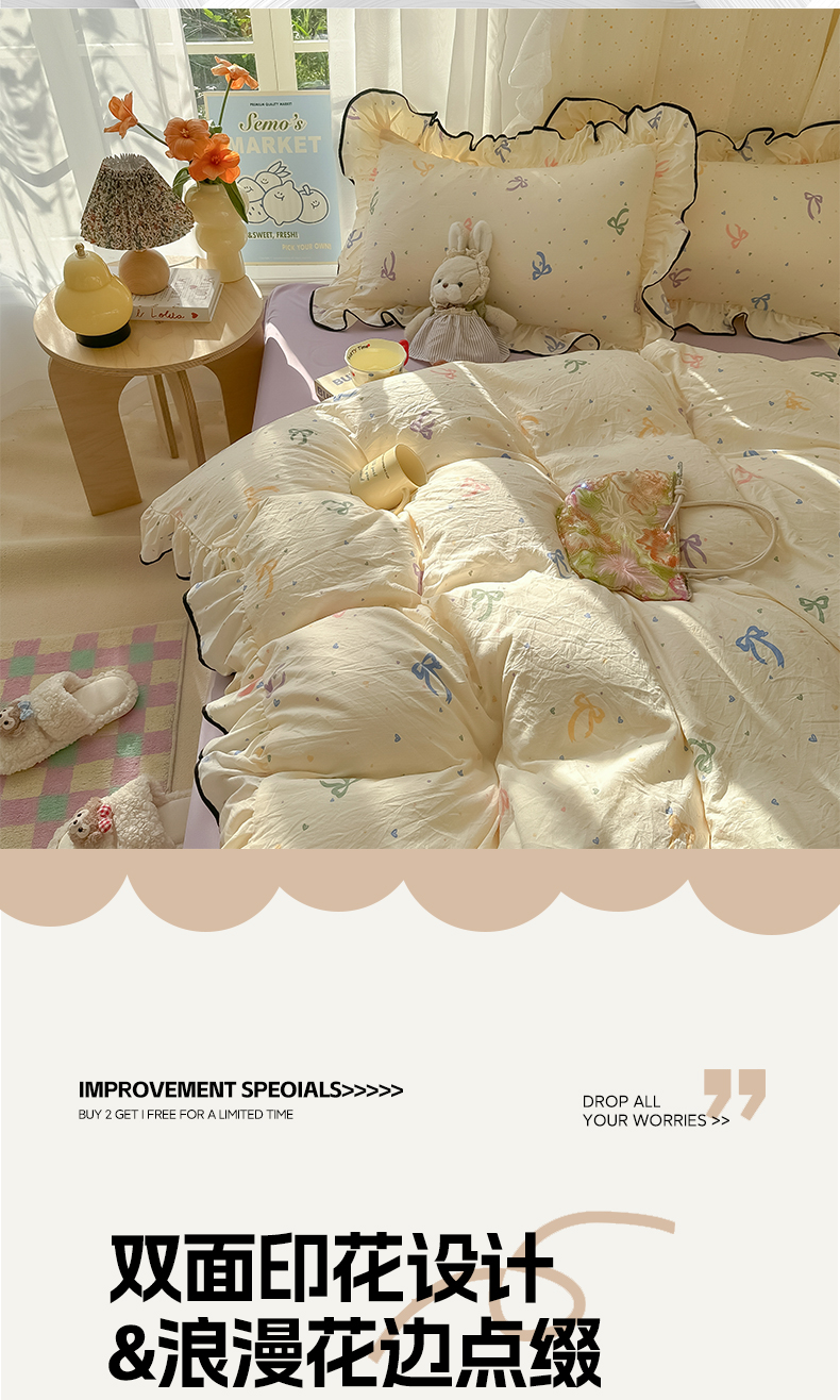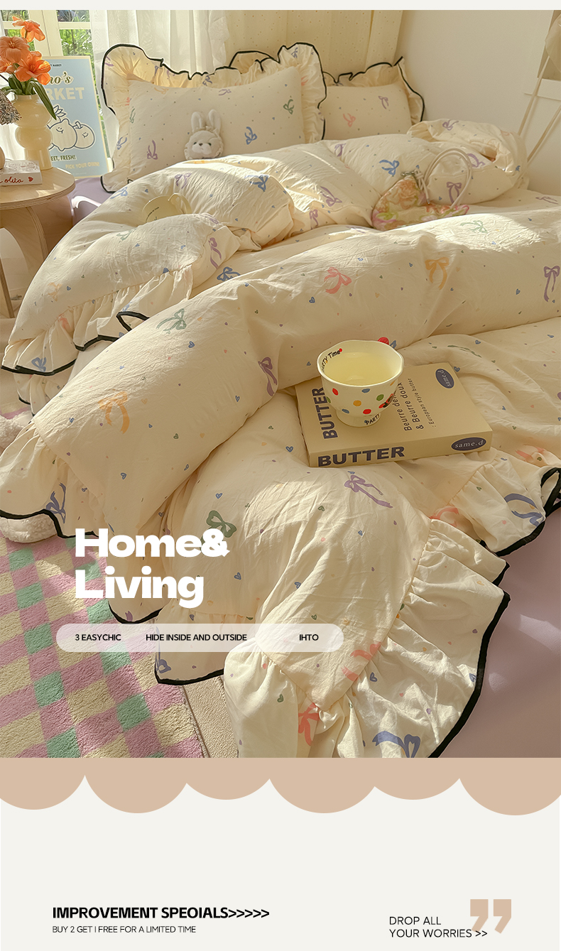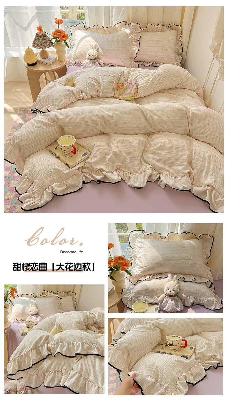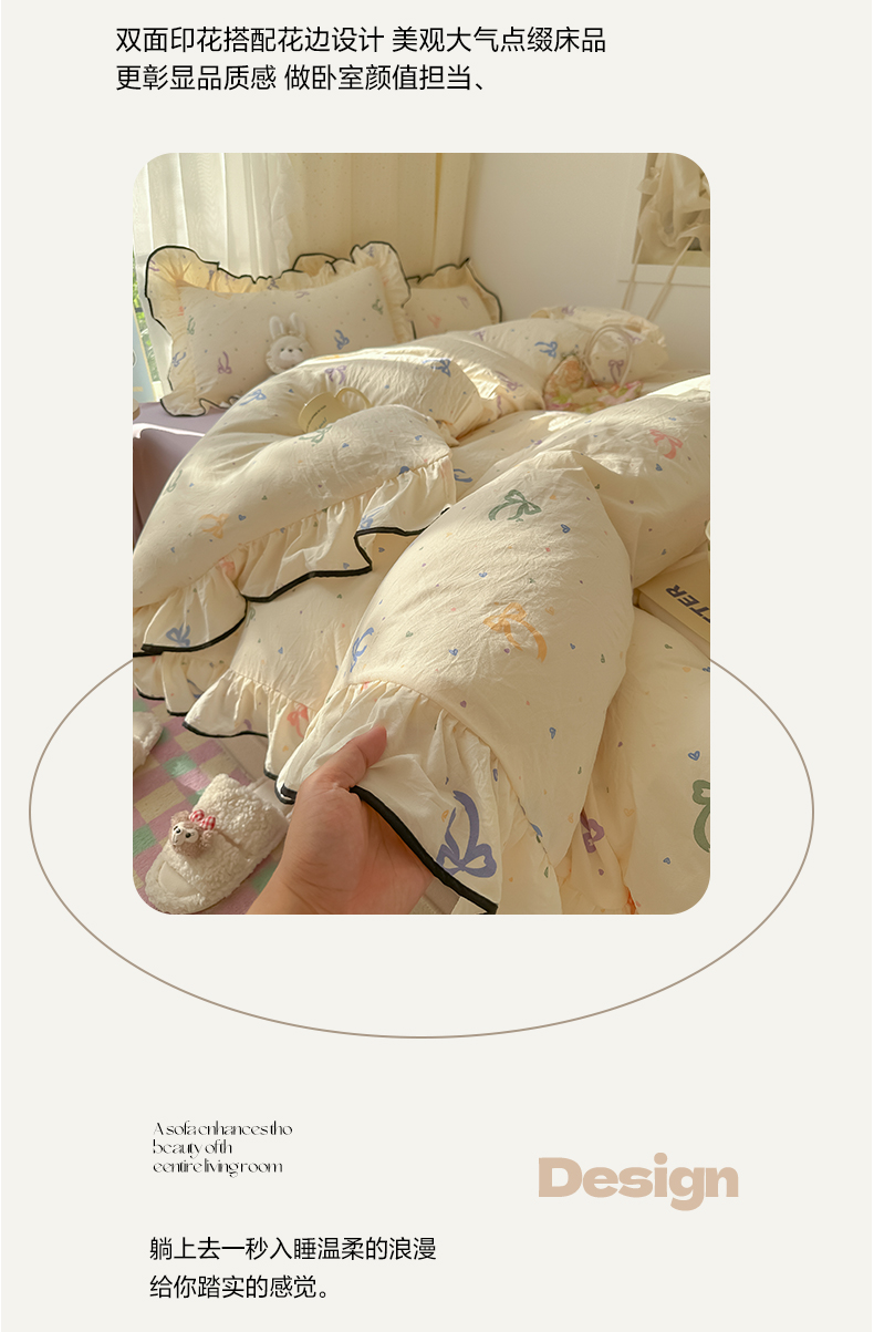 当前位置: 91家纺网 > 商品网购 > 床品套件 > 四件套 > 其它四件套 > 韩巢家纺 2025新款水洗棉大花边被套四件套直播热销款学生宿舍被罩床单三件套(提供卖家秀) 星梦蝶结【大花边款】