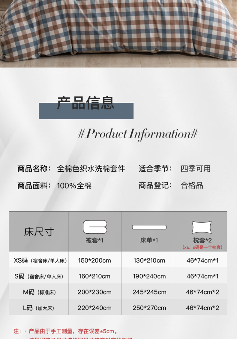 商品名称:(总)贝尔 PELLHOME 简约全棉纯棉色织水洗棉1.51.8三四件套(春节不打烊)(可抖音代发)