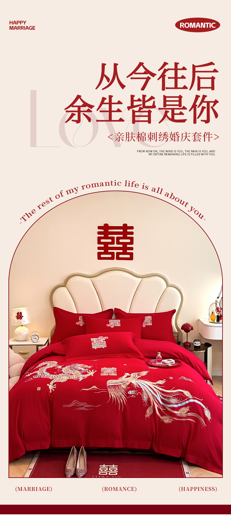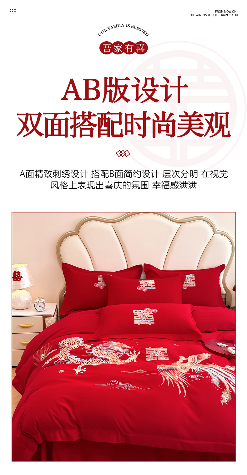 (总)火麒麟家纺 2024新款亲肤棉刺绣婚庆四件套,百年好合,成双成对,好姻缘,贺新婚,佳偶天成,龙凤情缘,玫瑰之恋,天作之合,甜甜蜜蜜,喜结良缘,喜事连连,相亲相爱,心心相印,新婚快乐,一生相伴,以爱之名
