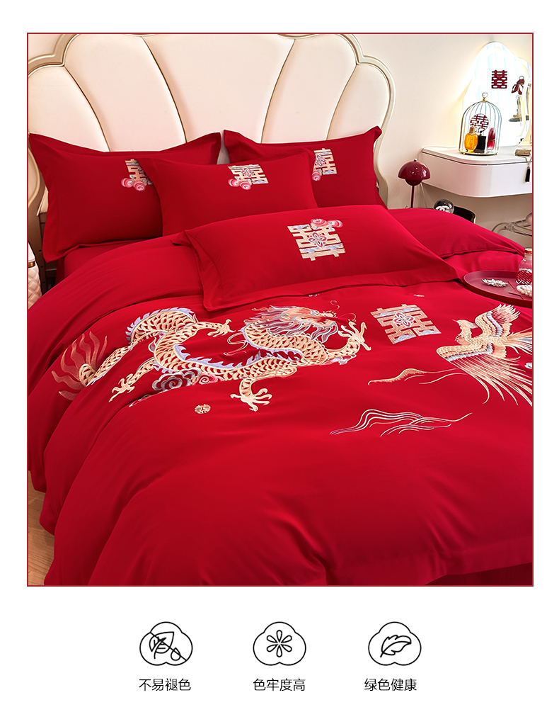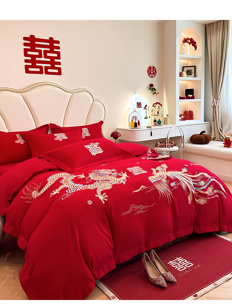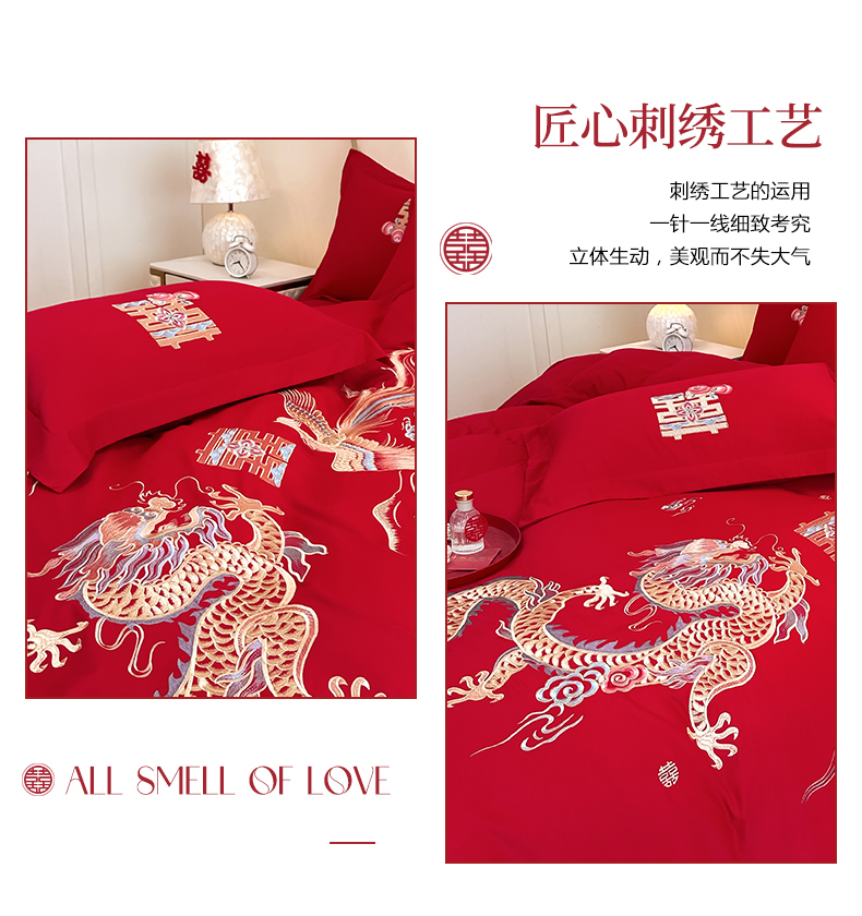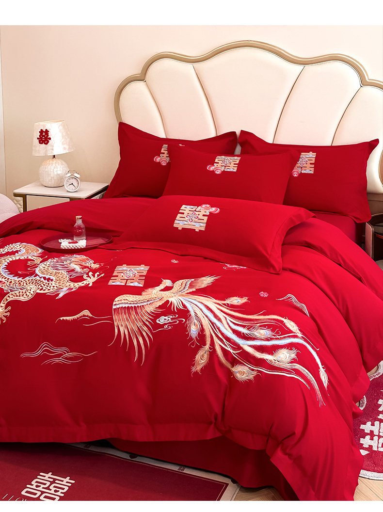 商品名称:火麒麟家纺 2025新款亲肤棉婚庆刺绣四件套 龙飞凤舞
