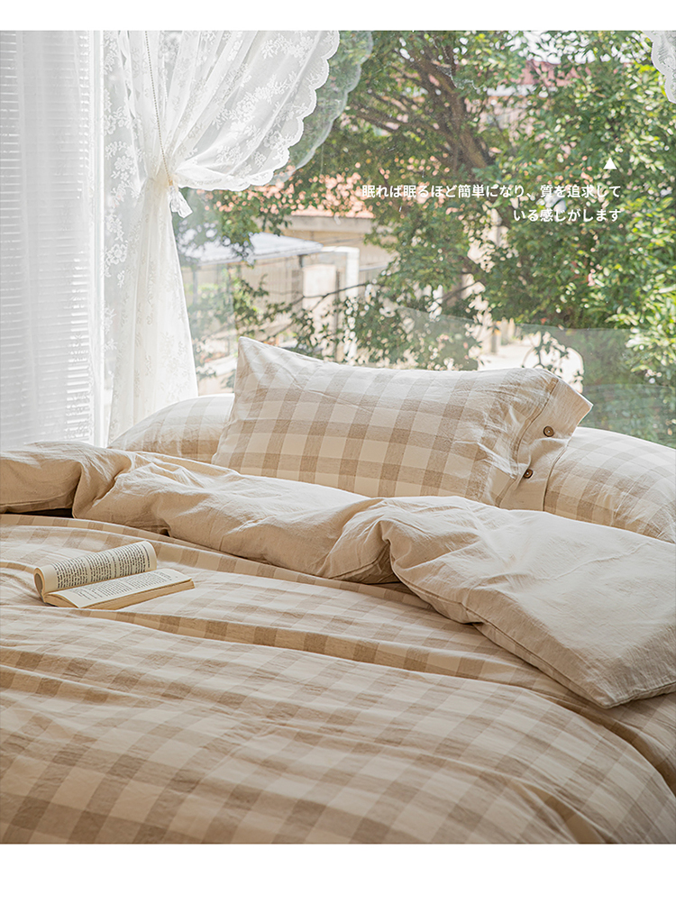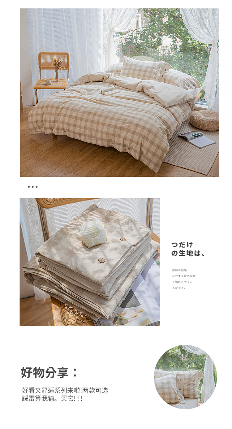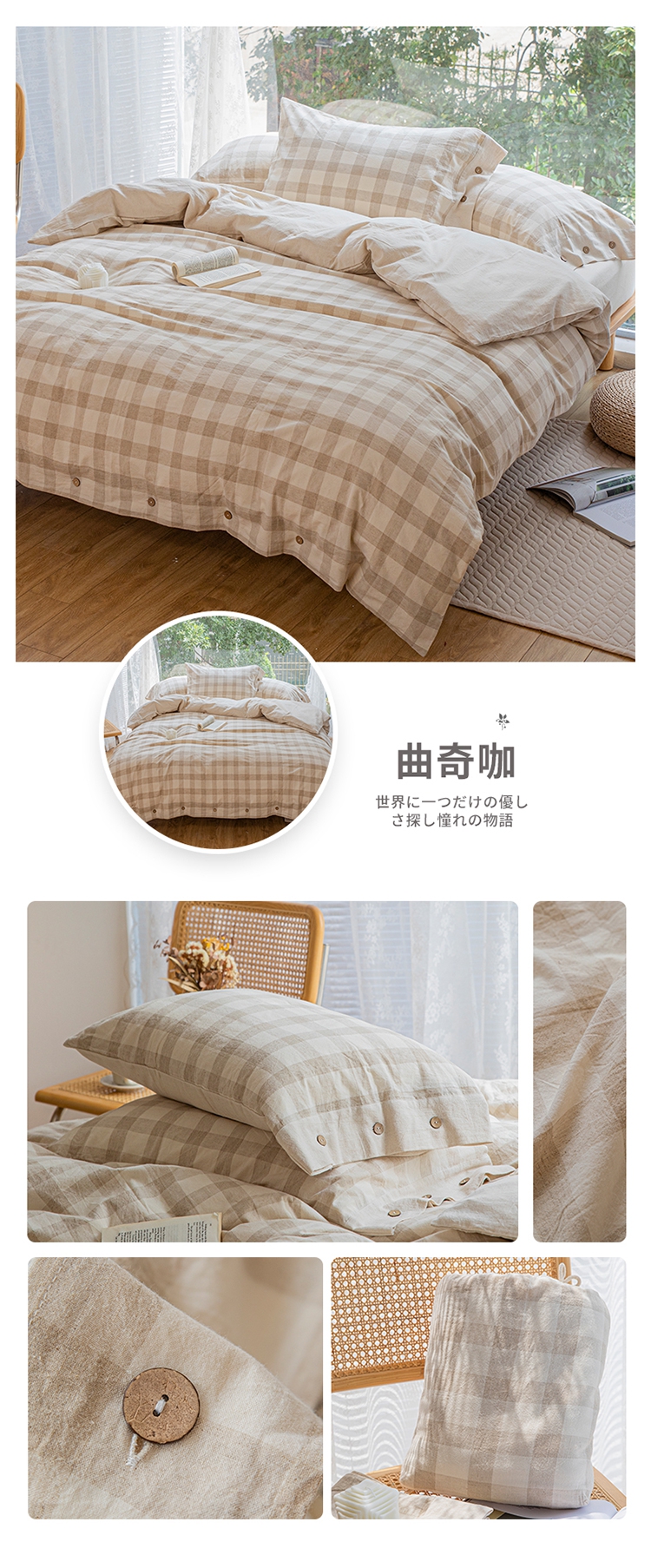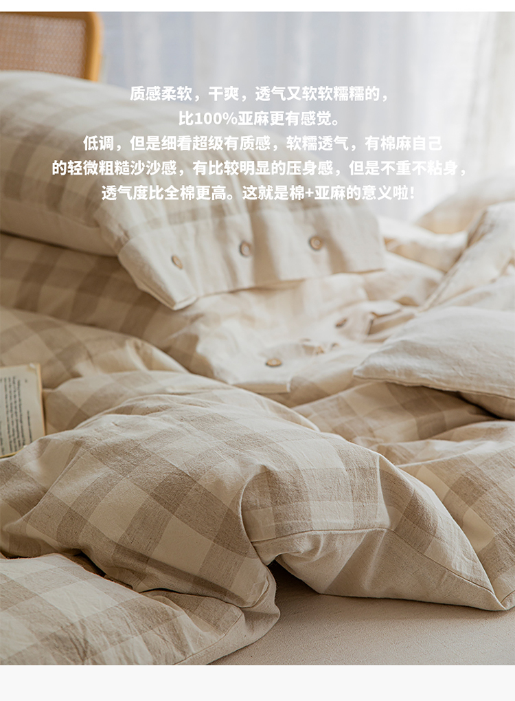 当前位置: 91家纺网 > 商品网购 > 床品套件 > 四件套 > 其它四件套 > 贝尔 PELLHOME 简约格子纽扣棉麻透气舒适亚麻四件套床单被套场景二(可抖音代发) 星格咖