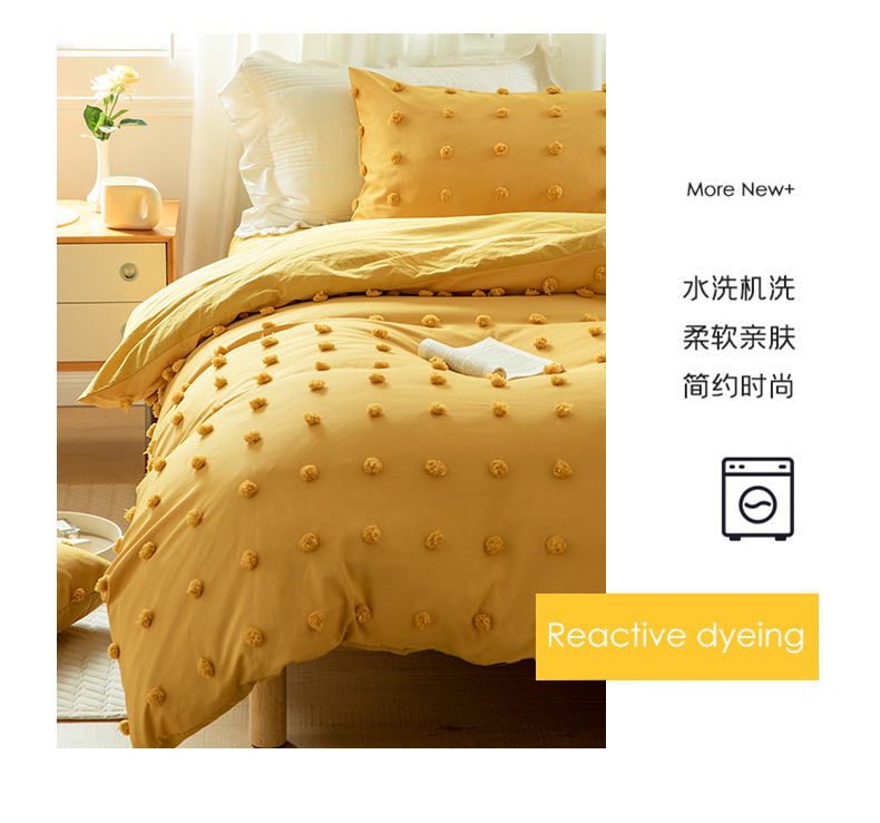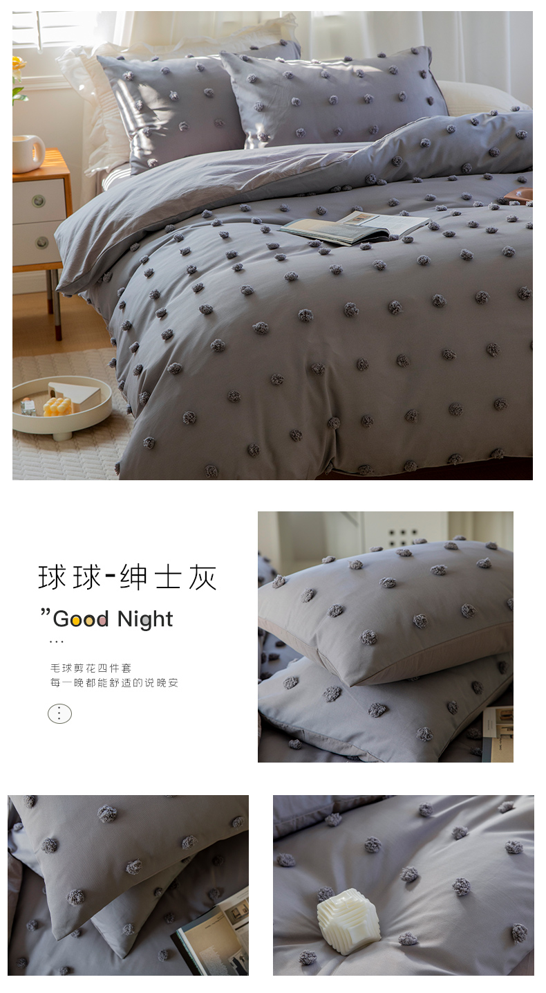 商品名称:贝尔 PELLHOME 复古风毛球剪花日式简约套件全棉水洗棉纯素色四件套(春节不打烊) 球球-嫣红
