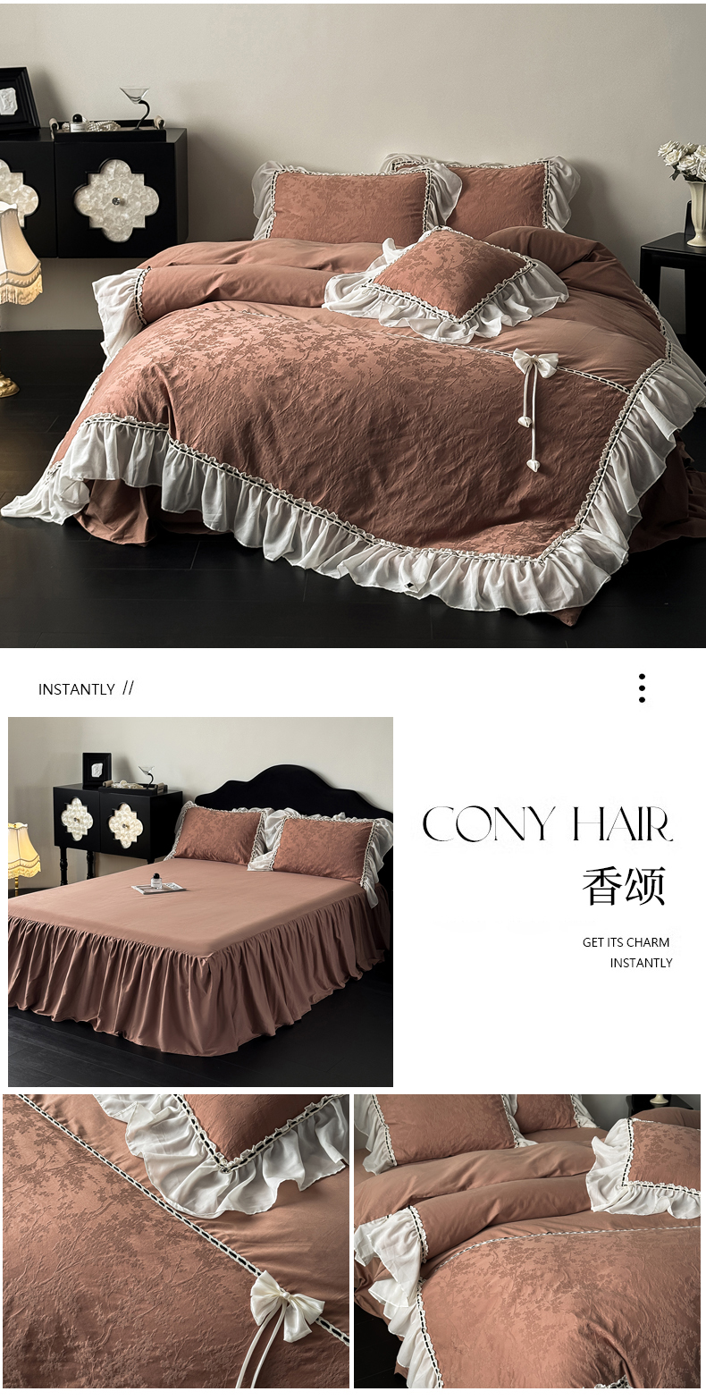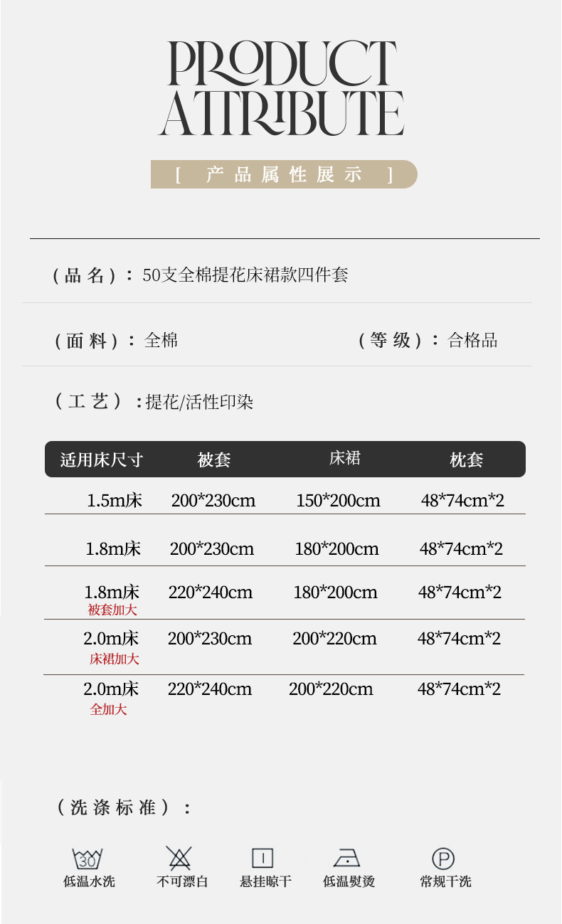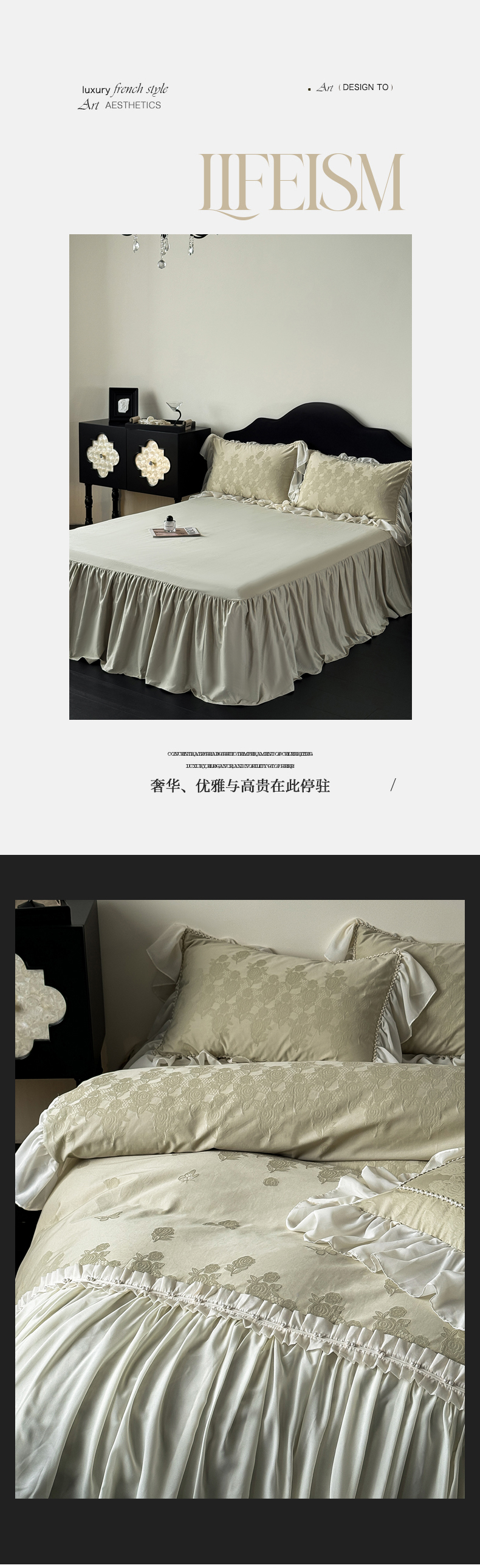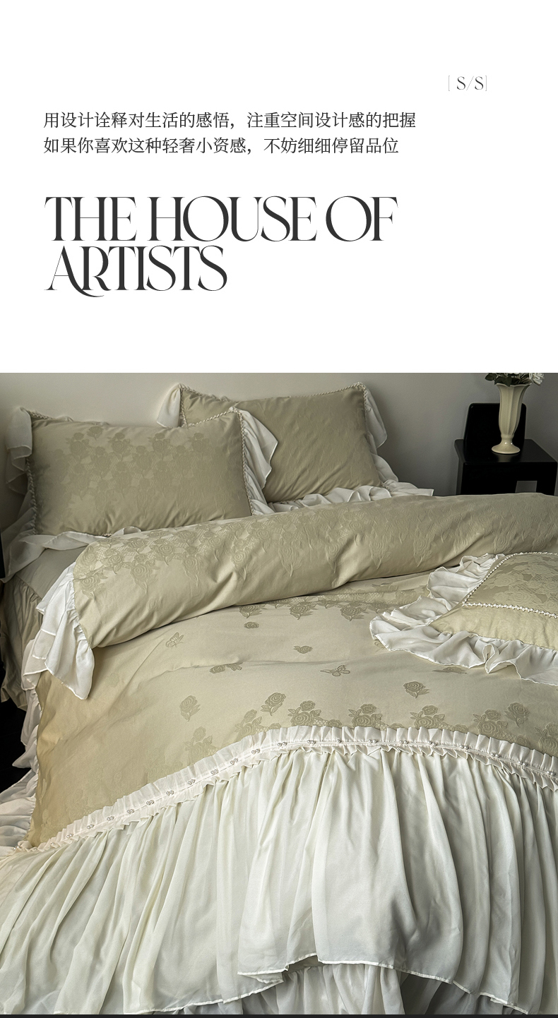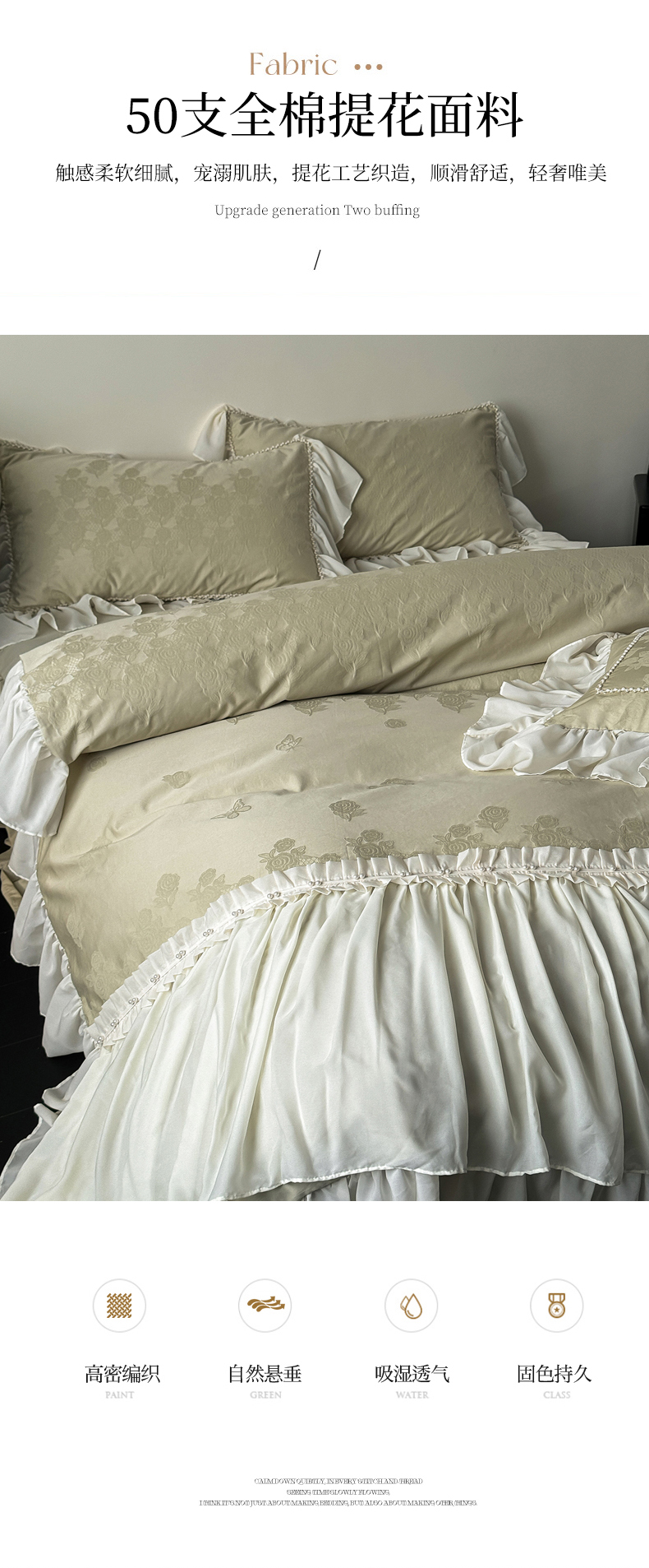 商品名称:菊上家纺 2025新款50S贡缎全棉提花床裙四件套 花漾
