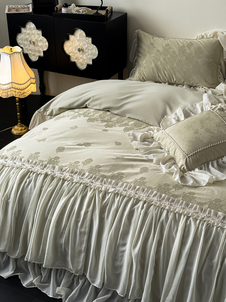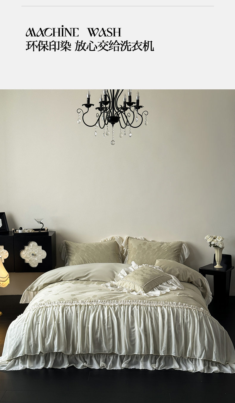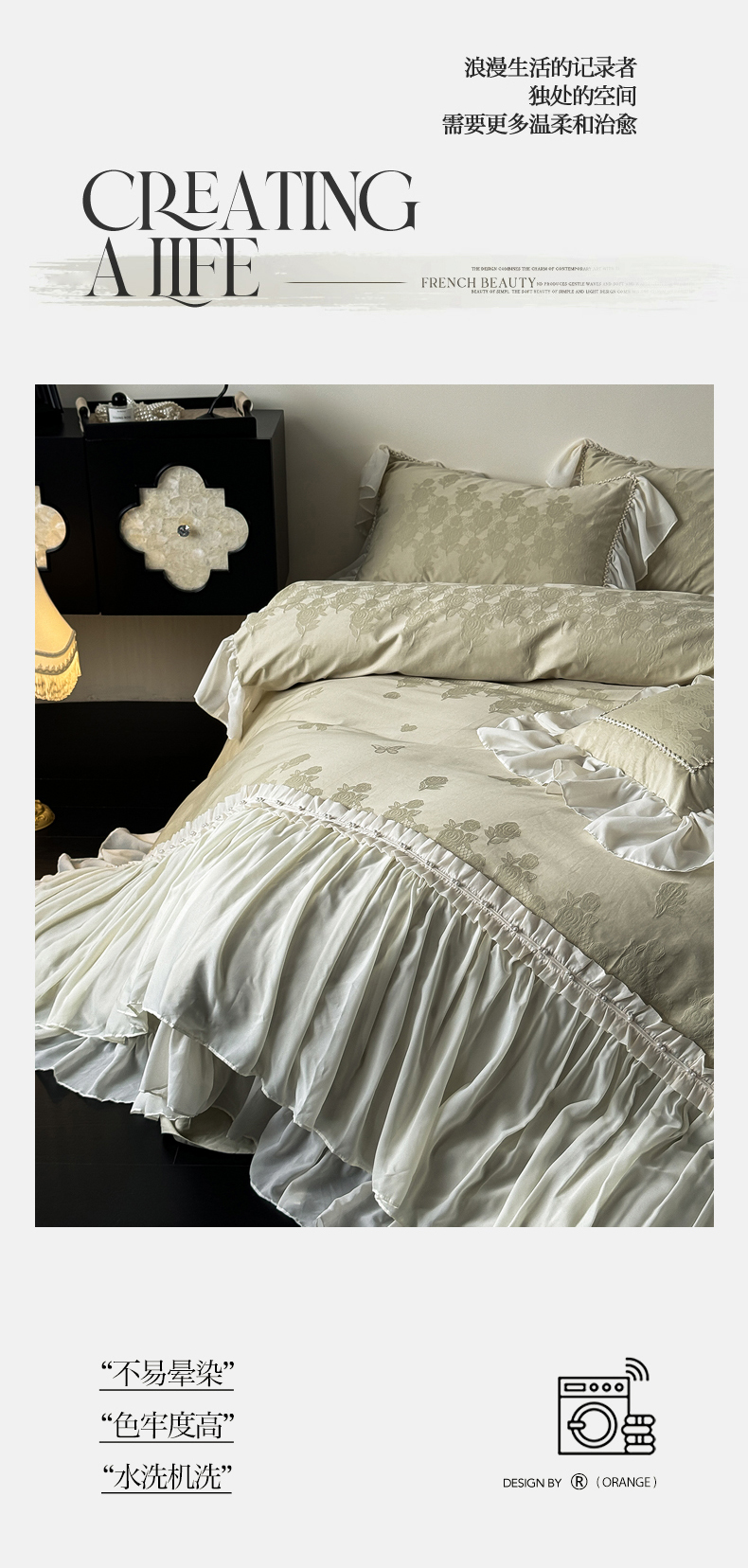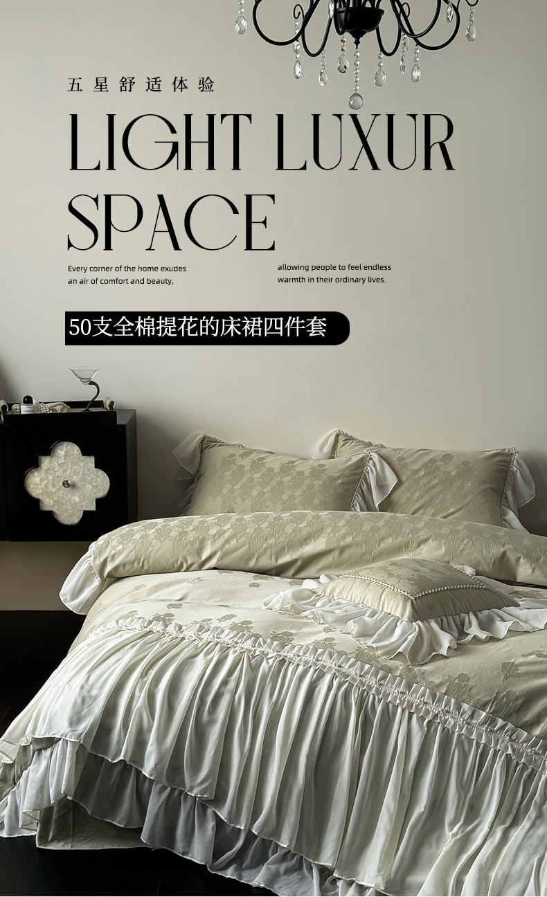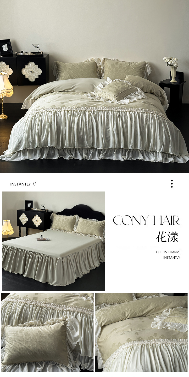 菊上家纺 2025新款50S贡缎全棉提花床裙四件套 花漾