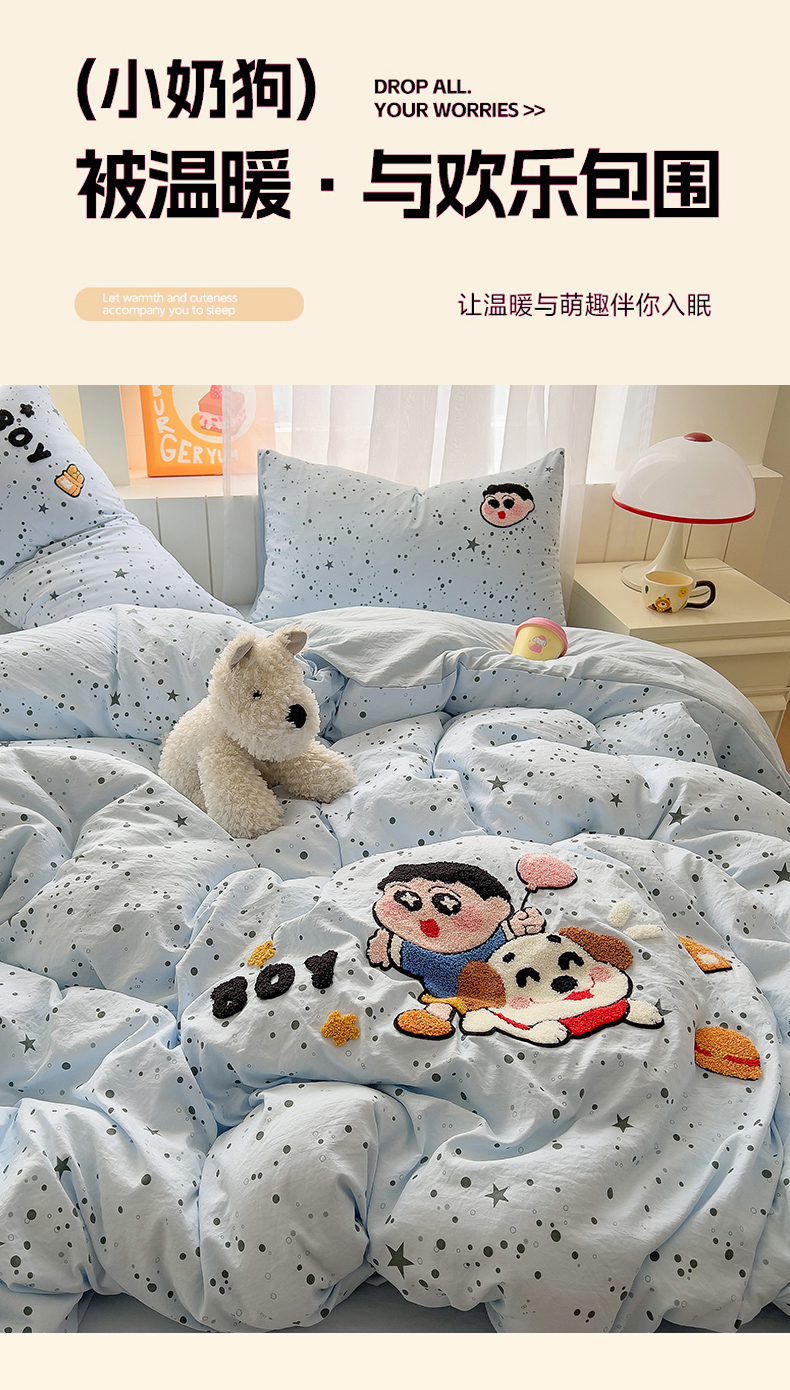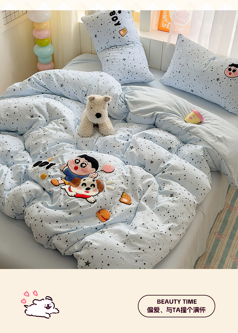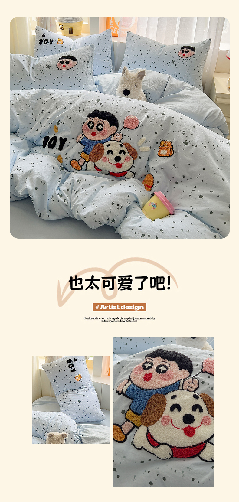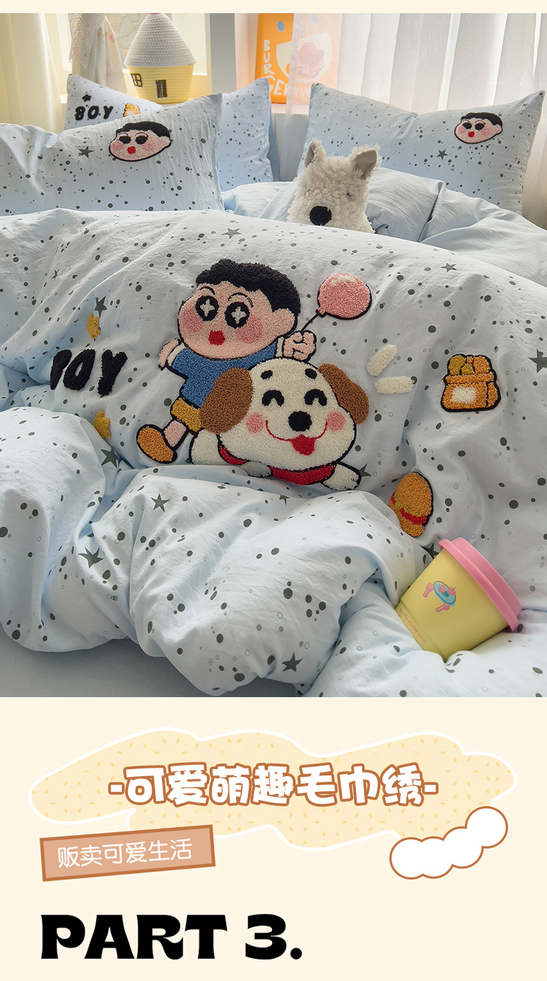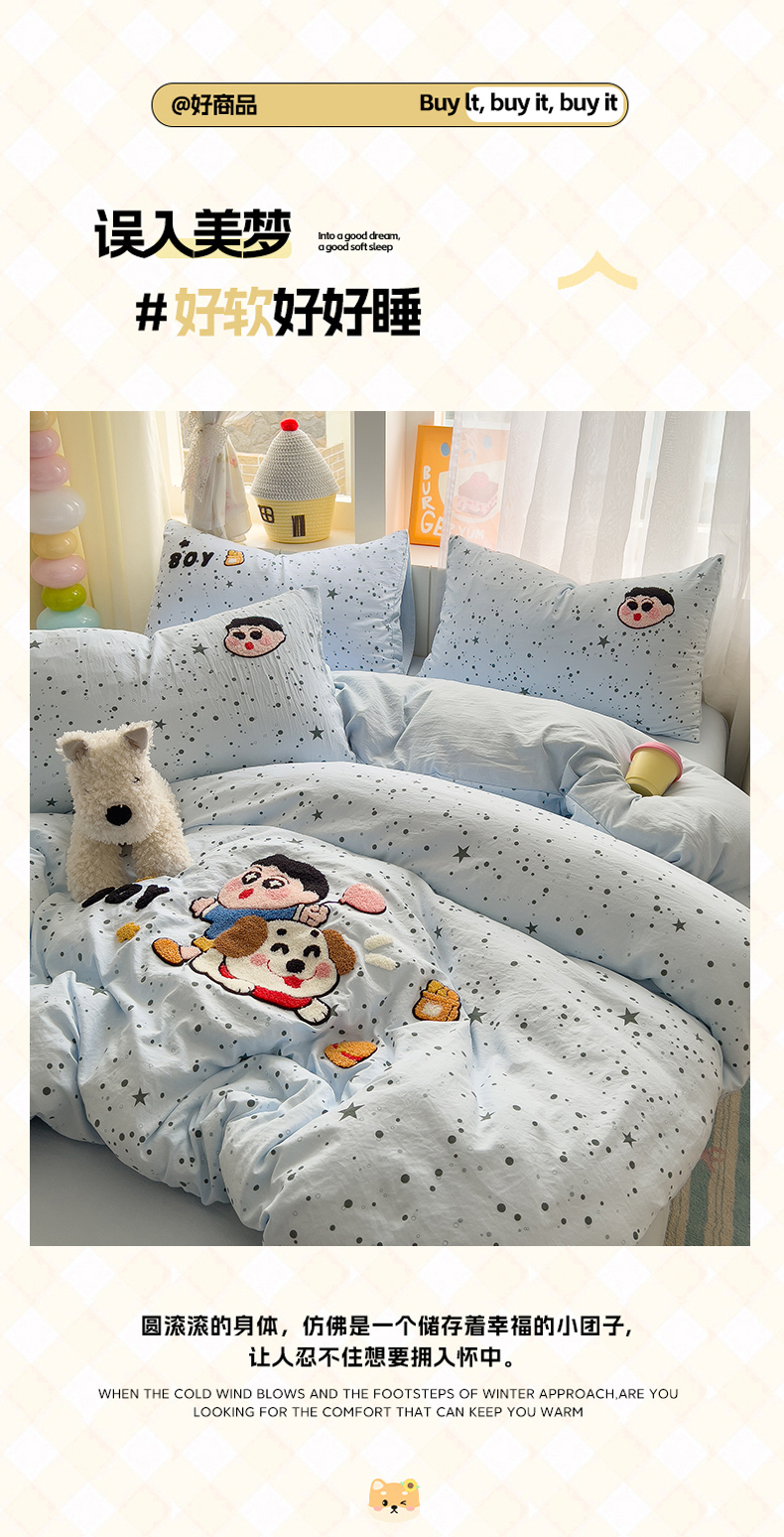 当前位置: 91家纺网 > 商品网购 > 床品套件 > 四件套 > 水洗棉四件套 > 易辰美 2025新款水洗棉毛巾绣卡通四件套 小新与大白