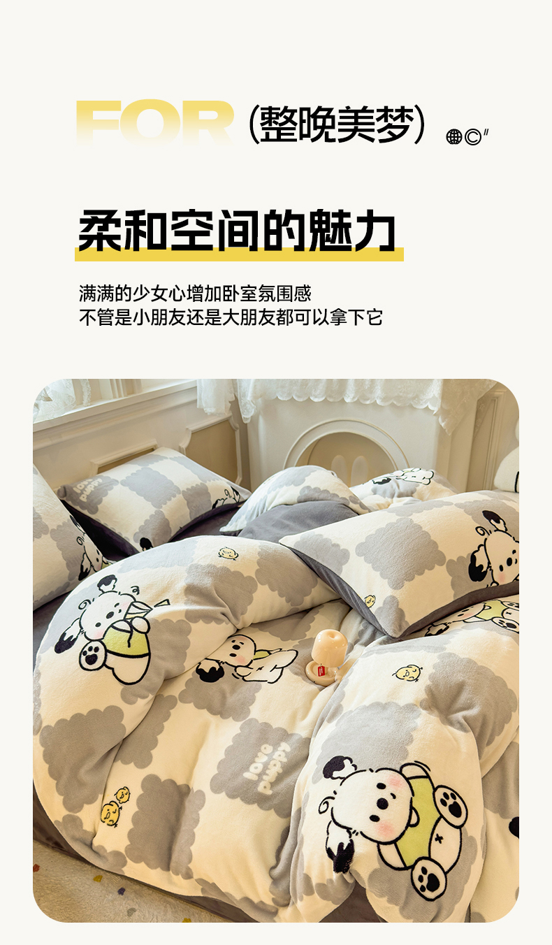 当前位置: 91家纺网 > 商品网购 > 床品套件 > 四件套 > 牛奶绒四件套 > 摩妮卡 摩妮卡 2025新款加厚款小清新牛奶绒印花四件套床单款床笠单被套 格子狗