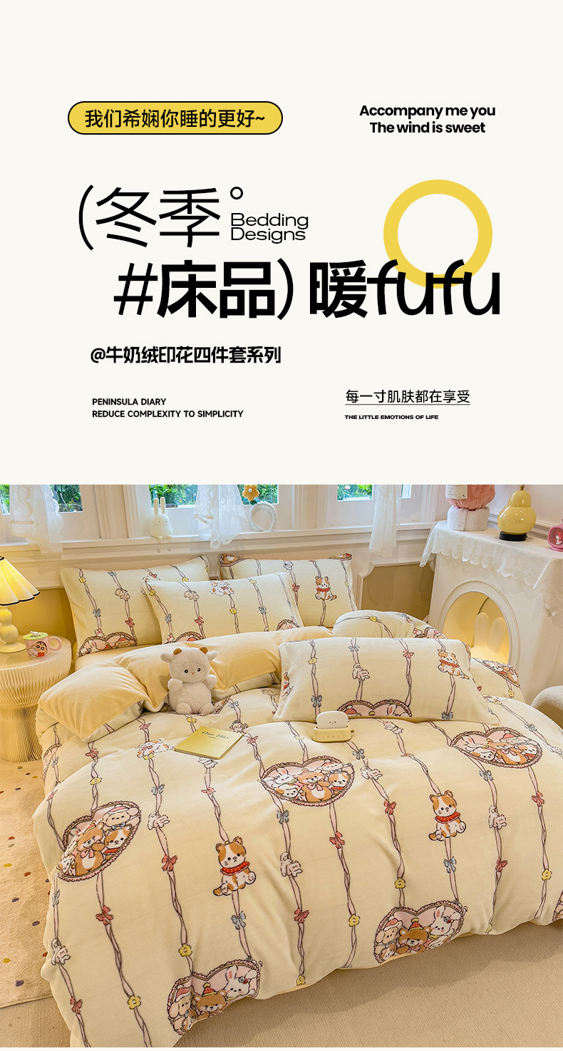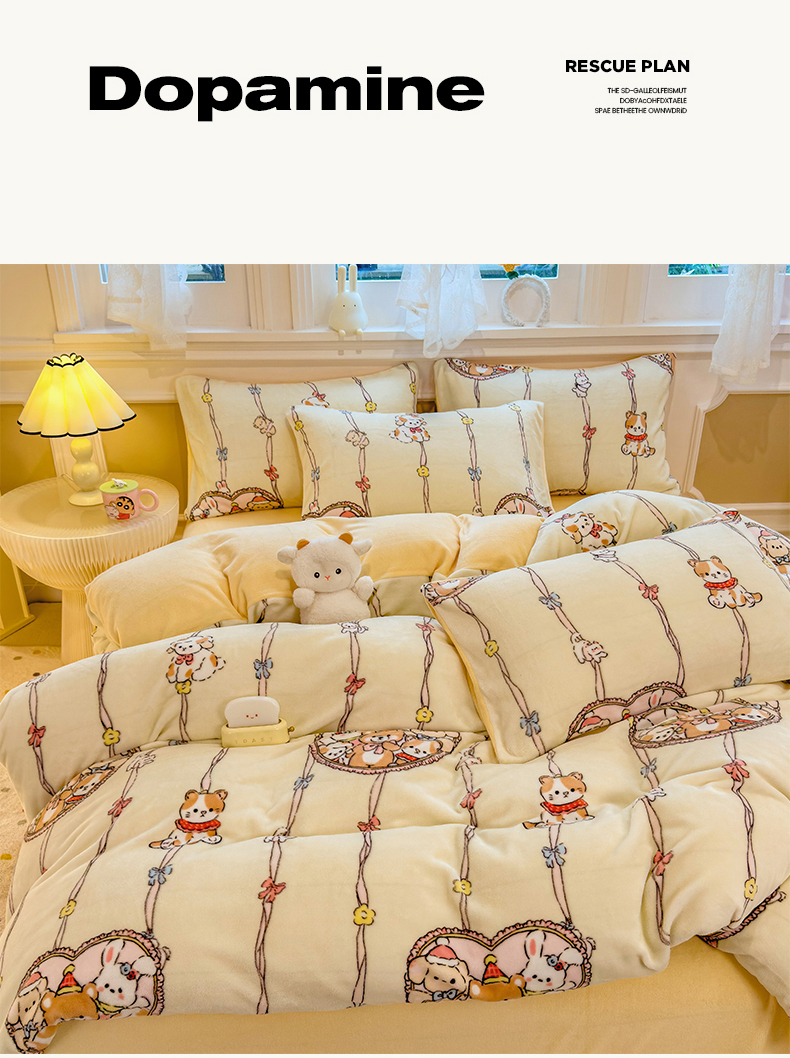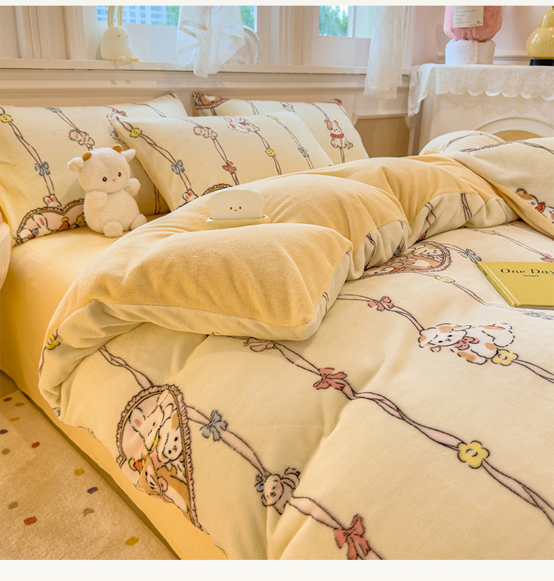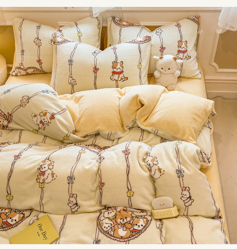 当前位置: 91家纺网 > 商品网购 > 床品套件 > 四件套 > 牛奶绒四件套 > 摩妮卡 摩妮卡 2025新款加厚款小清新牛奶绒印花四件套床单款床笠单被套 萌宠乐园