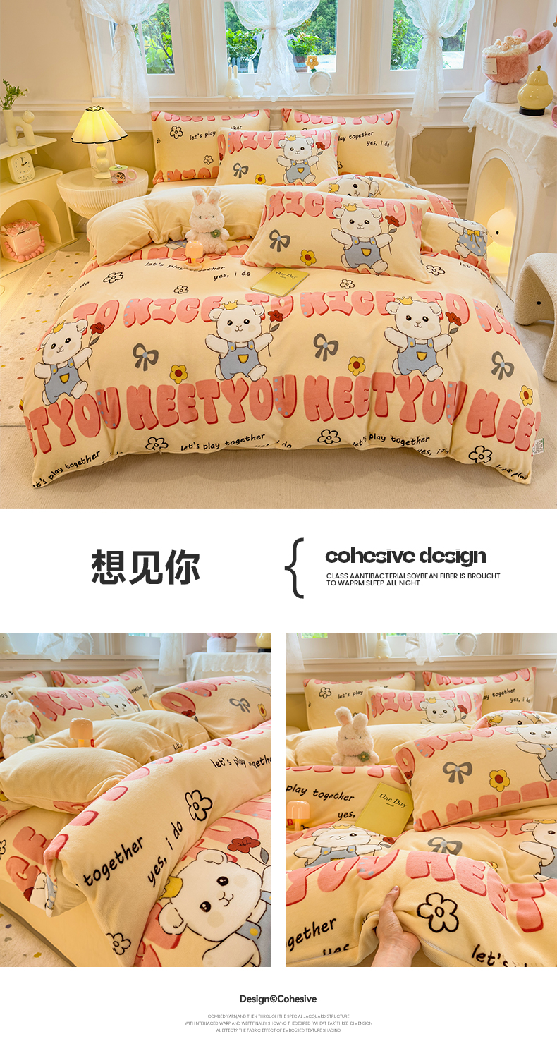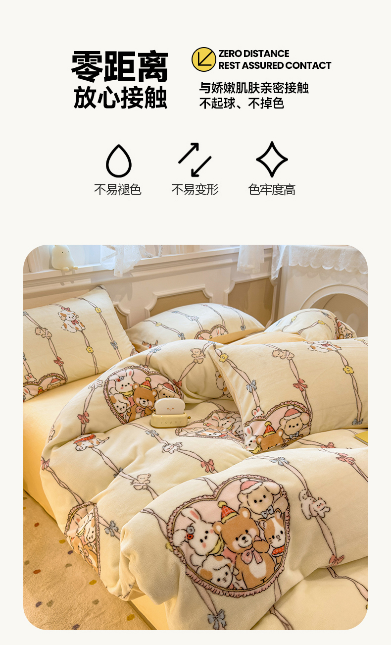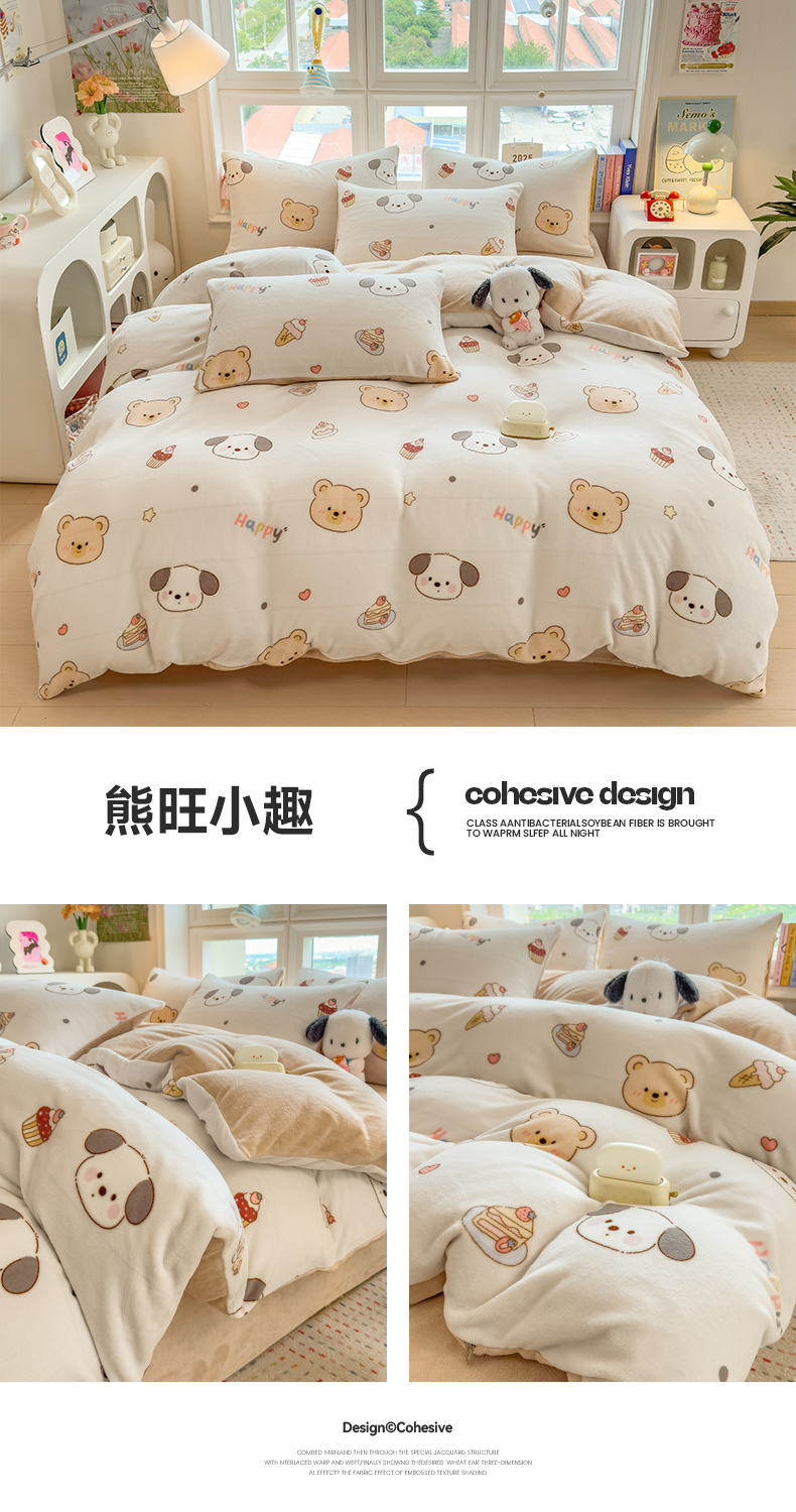 当前位置: 91家纺网 > 商品网购 > 床品套件 > 四件套 > 牛奶绒四件套 > 摩妮卡 摩妮卡 2025新款加厚款小清新牛奶绒印花四件套床单款床笠单被套 萌宠乐园