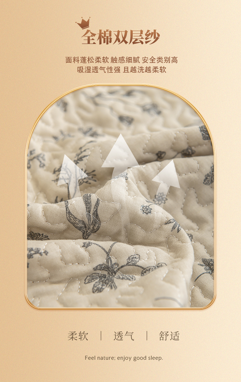 商品名称:拾小柒 2025年新款全棉双层纱床护垫纯棉防滑床盖床褥子软床垫 山野小咖