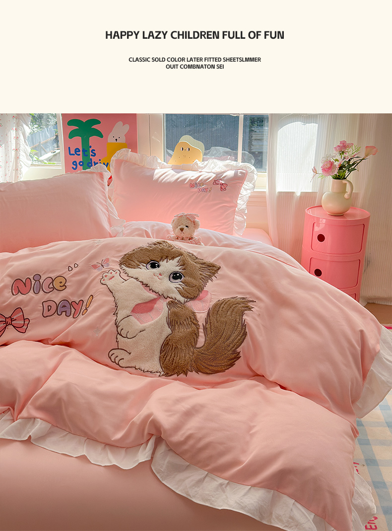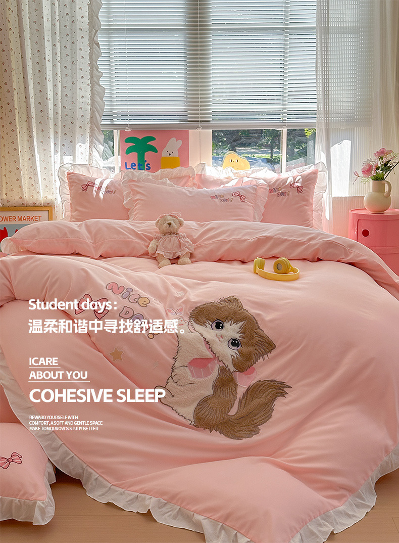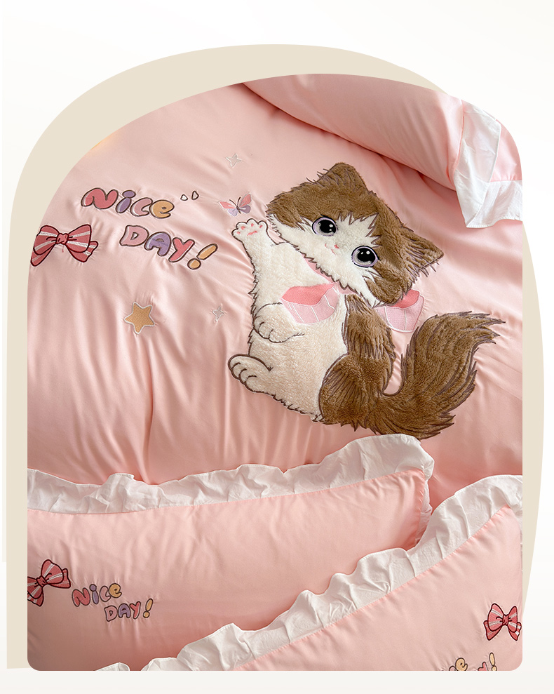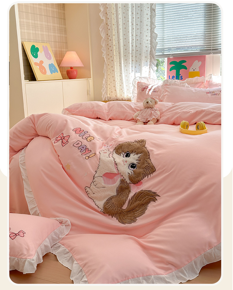 当前位置: 91家纺网 > 商品网购 > 床品套件 > 四件套 > 水洗棉四件套 > 易禾家纺 2025新款韩版卡通兔毛贴布绣水洗棉四件套学生宿舍三件套-炸毛小猫 炸毛小猫——粉