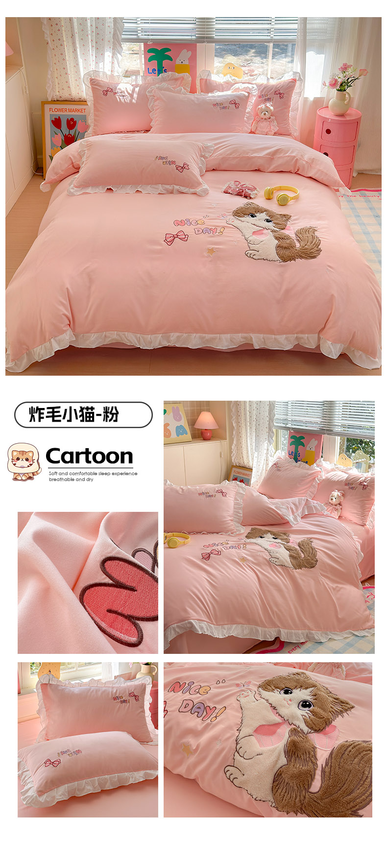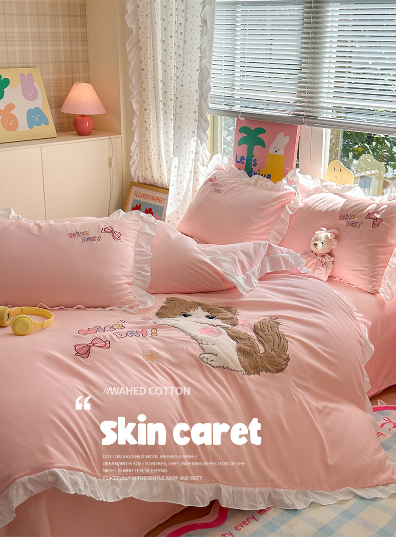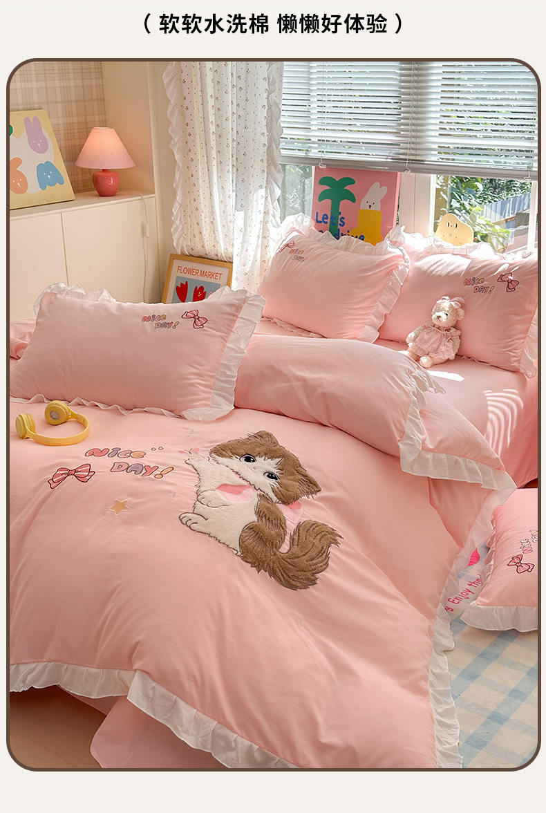 当前位置: 91家纺网 > 商品网购 > 床品套件 > 四件套 > 水洗棉四件套 > 易禾家纺 2025新款韩版卡通兔毛贴布绣水洗棉四件套学生宿舍三件套-炸毛小猫 炸毛小猫——粉