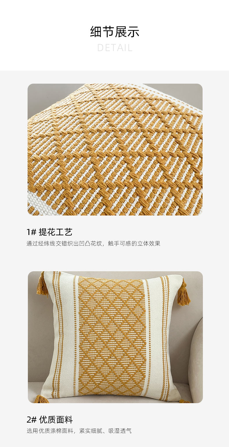 商品名称:新奇异 2025新款波西米亚多菱形流苏抱枕 多菱形-金黄
