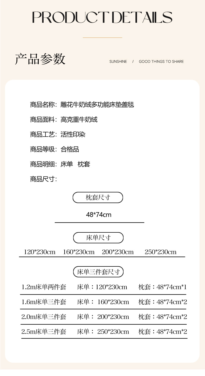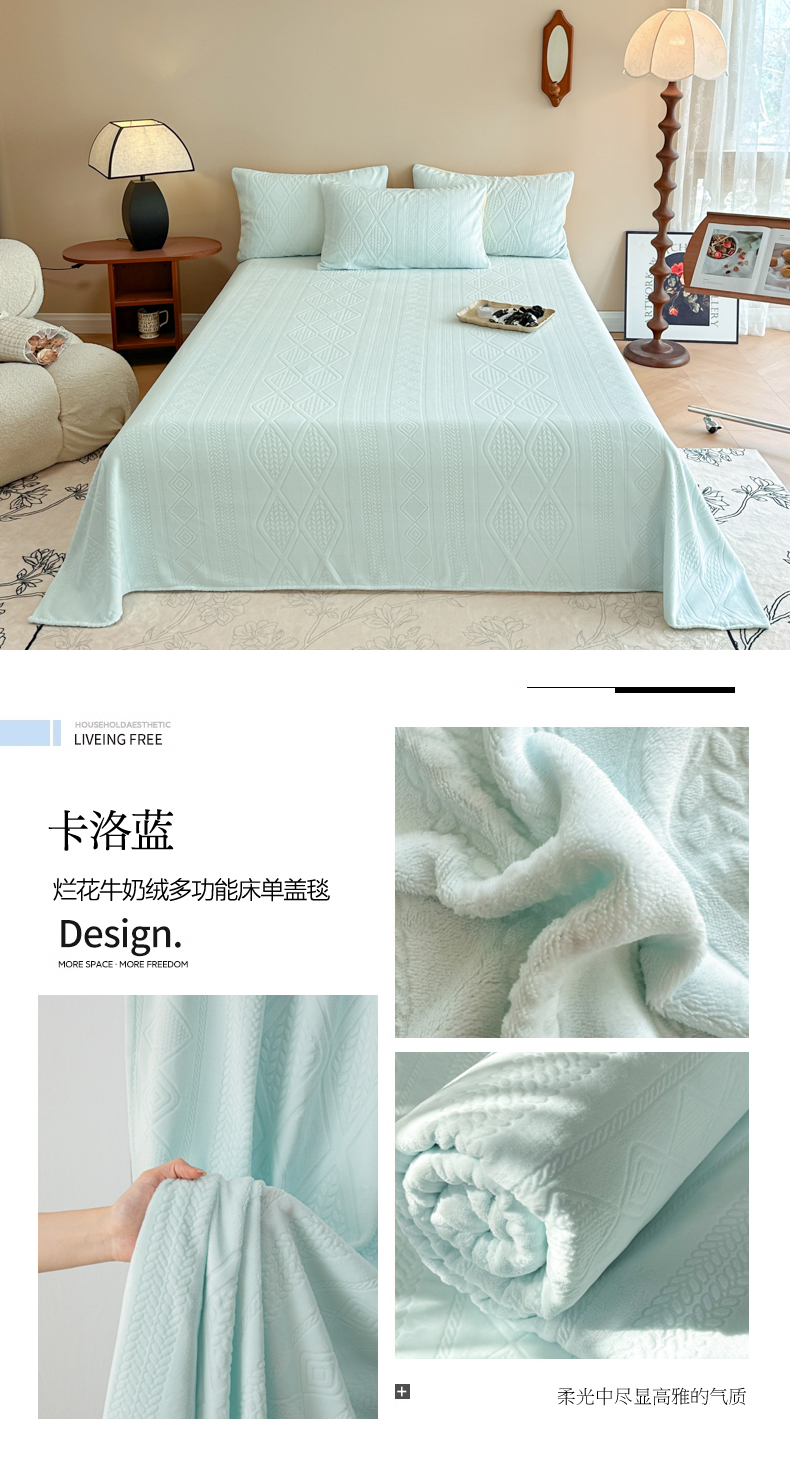 商品名称:(总)眠博士 2025新款雕花加厚牛奶绒单品床单 床单单件-卡洛