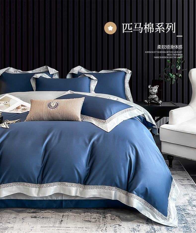 商品名称:娇逸家居 2025四季款100支全棉全棉纯棉镂空款四件套-圣地亚 圣地亚-青春蓝